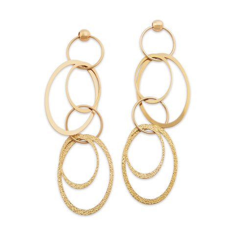 Estate Italian 14k Yellow Gold Cascading Interlocking Oval Long Dangle Earrings