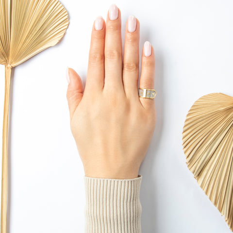 Antique 10k Rosy Yellow Gold Moonstone Mystical Buttercup Dome Ring 6.75