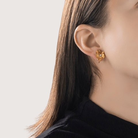 Vintage 14k Yellow Gold Diamond Pretty Satin Pansy Screw-Back Earrings