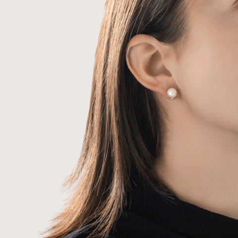 Vintage 14k Yellow Gold Pearl Diamond Pale Pink Glowing Duo Stud Earrings