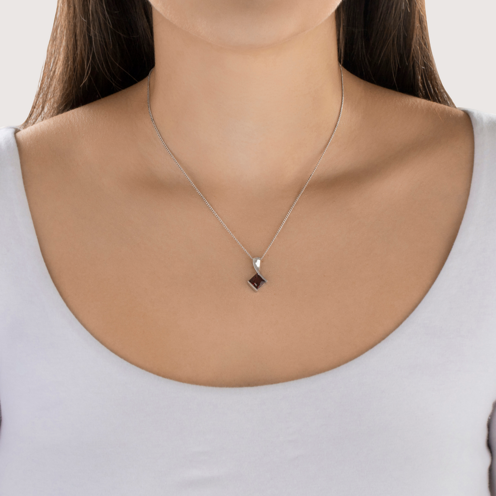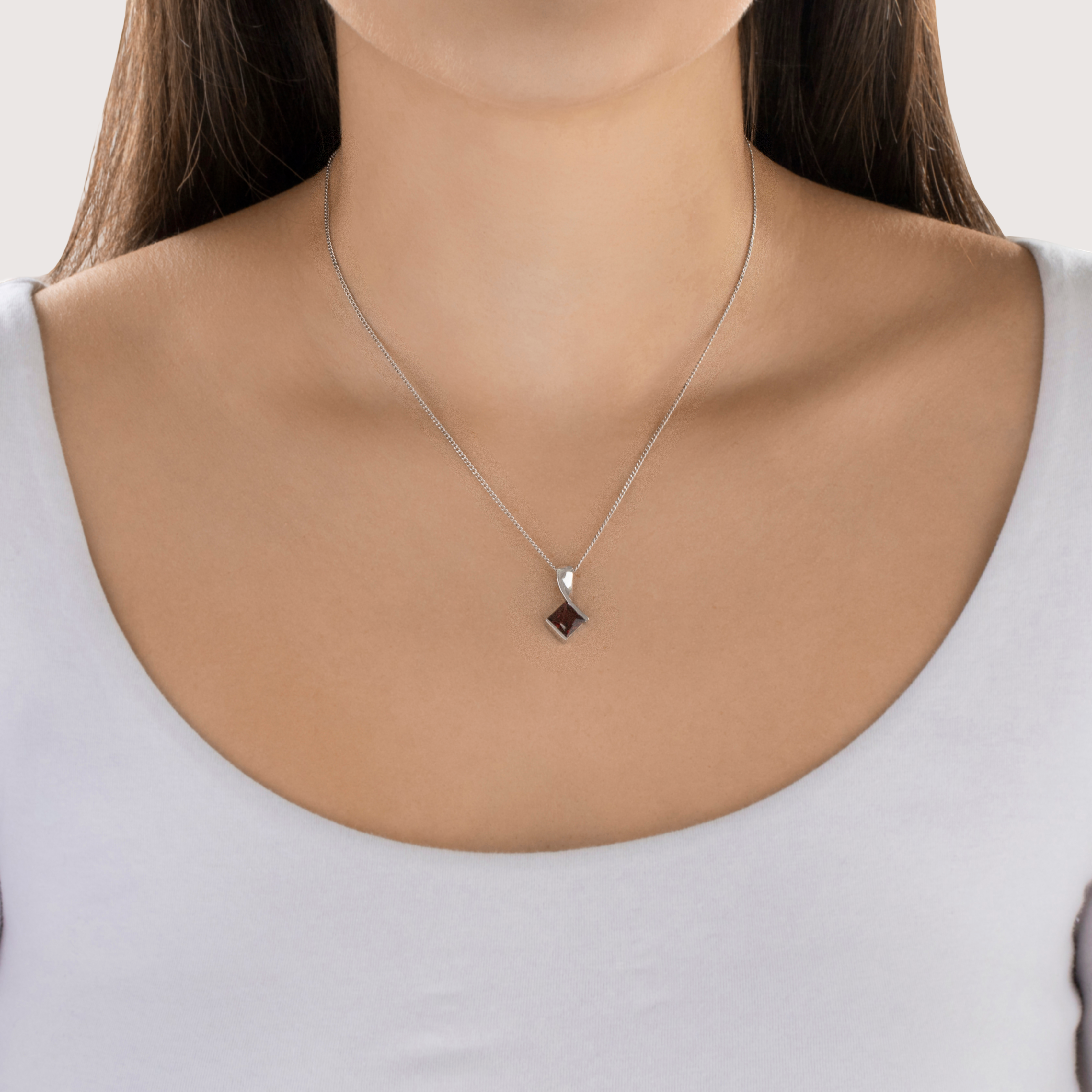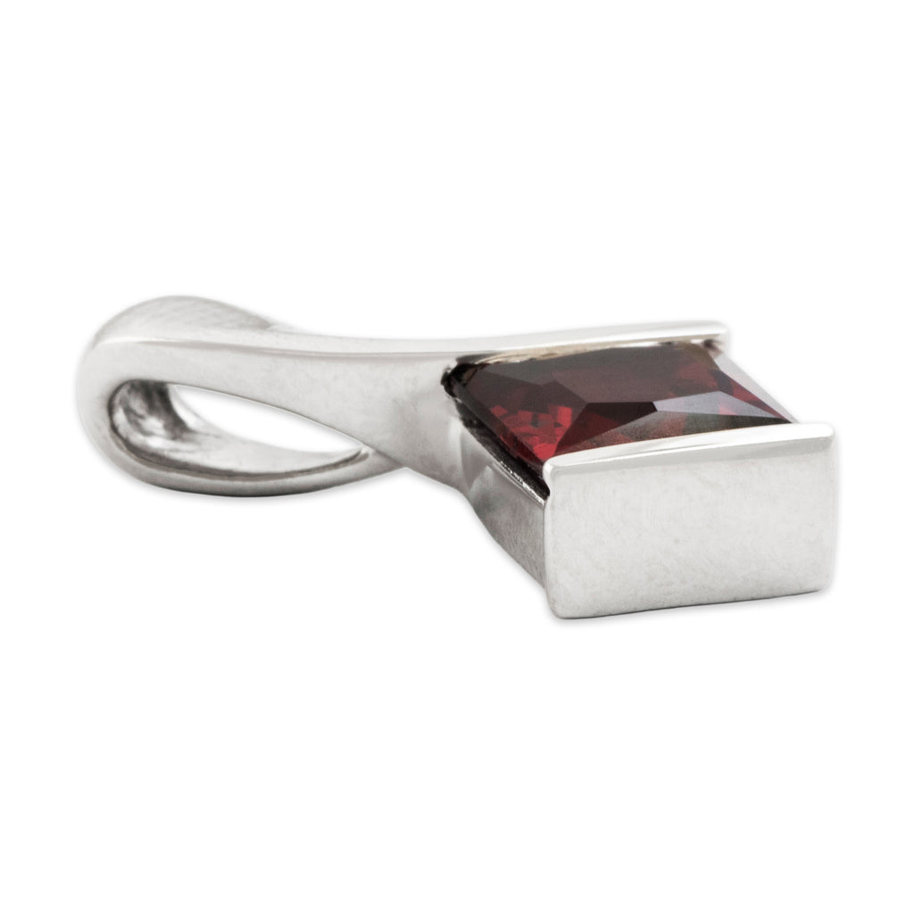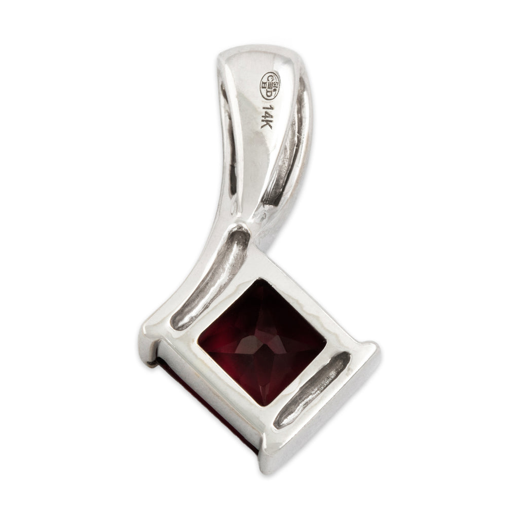 Discover this 14k white gold pendant crafted by an estate maker in a wonderful sleek modern swoop design featuring garnet. All gemstones are natural, earth-mined stones, unless stated otherwise.