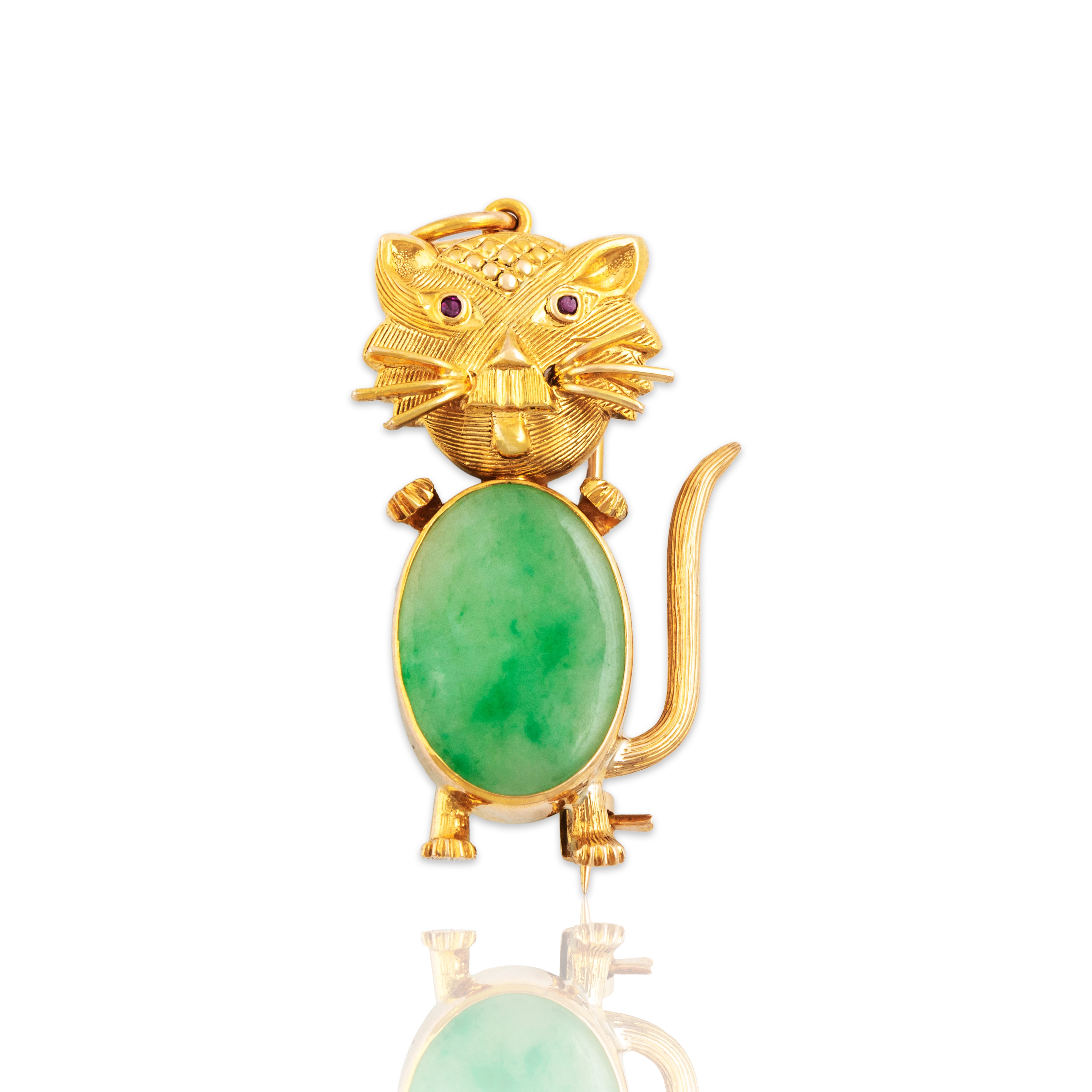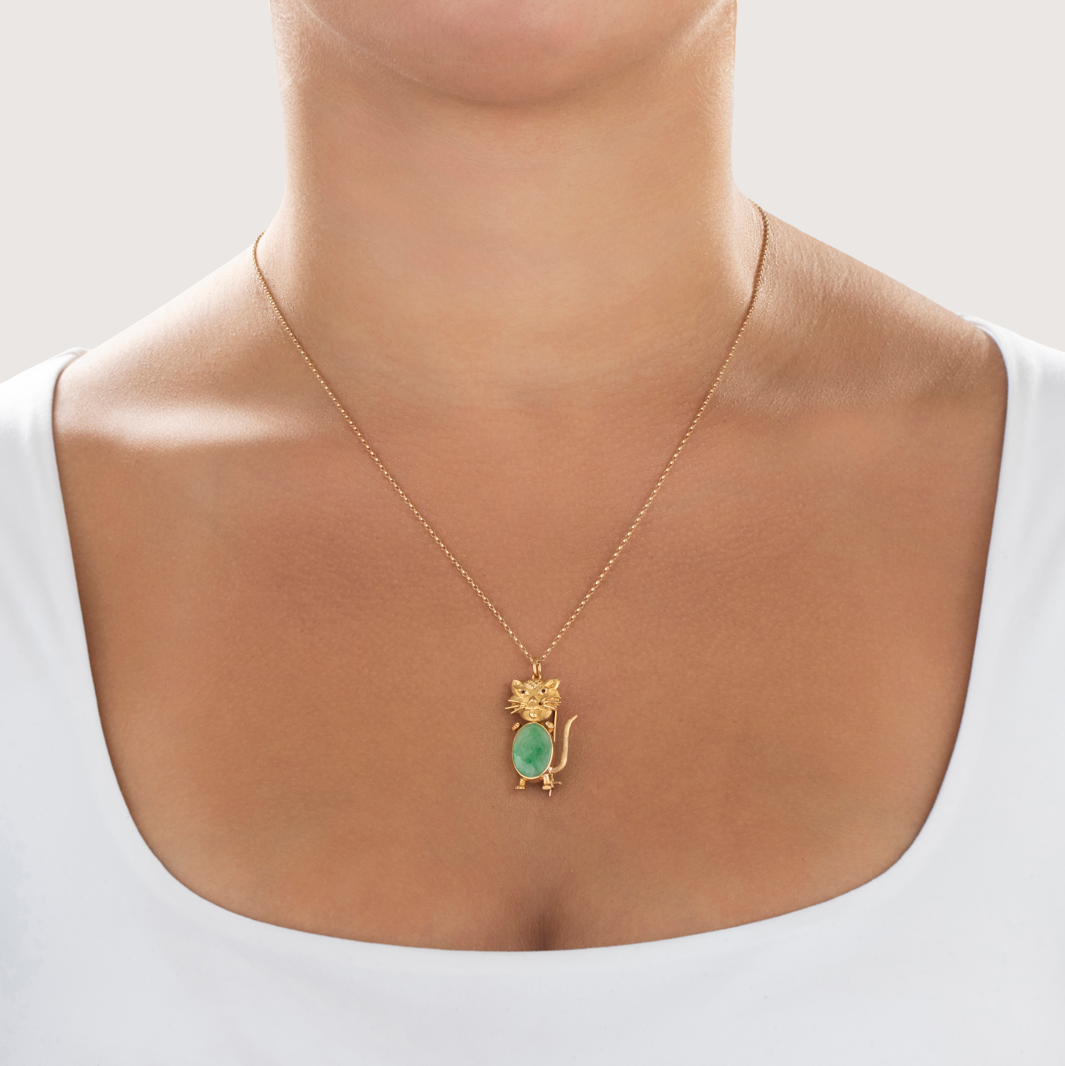 Condition: Very good condition, not eye-visible, seen under 10x magnification: very minor surface wear to jade, wear near whiskers on one side