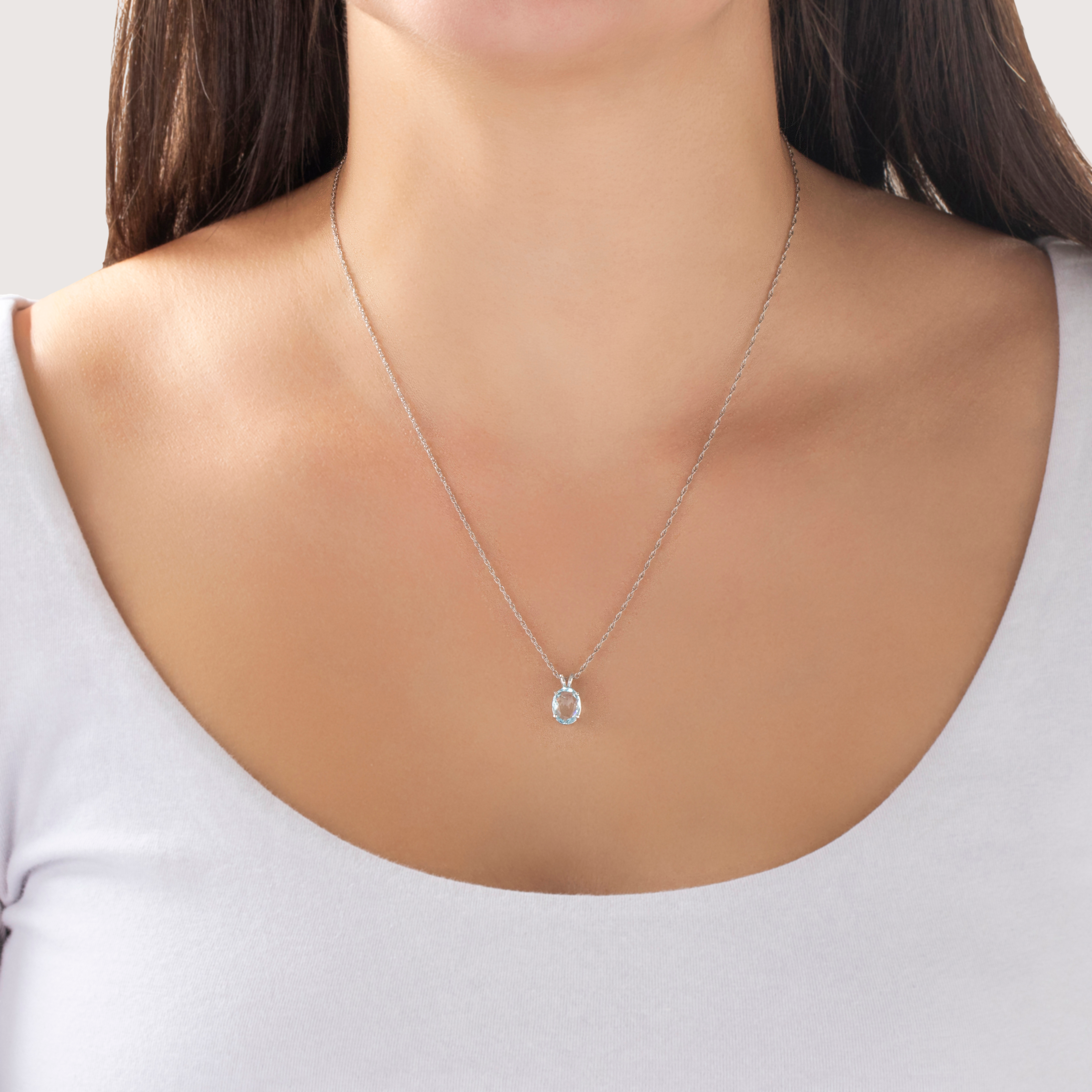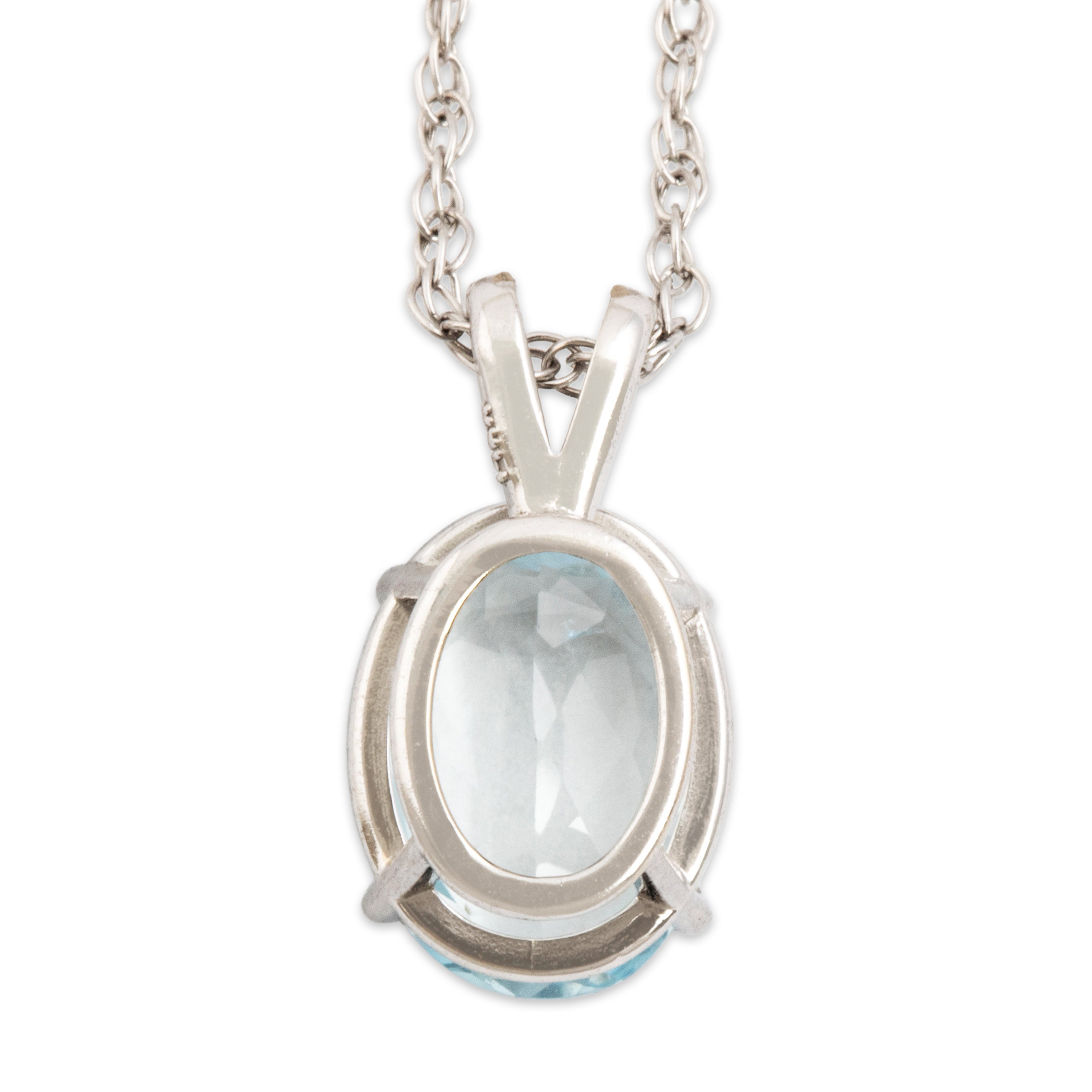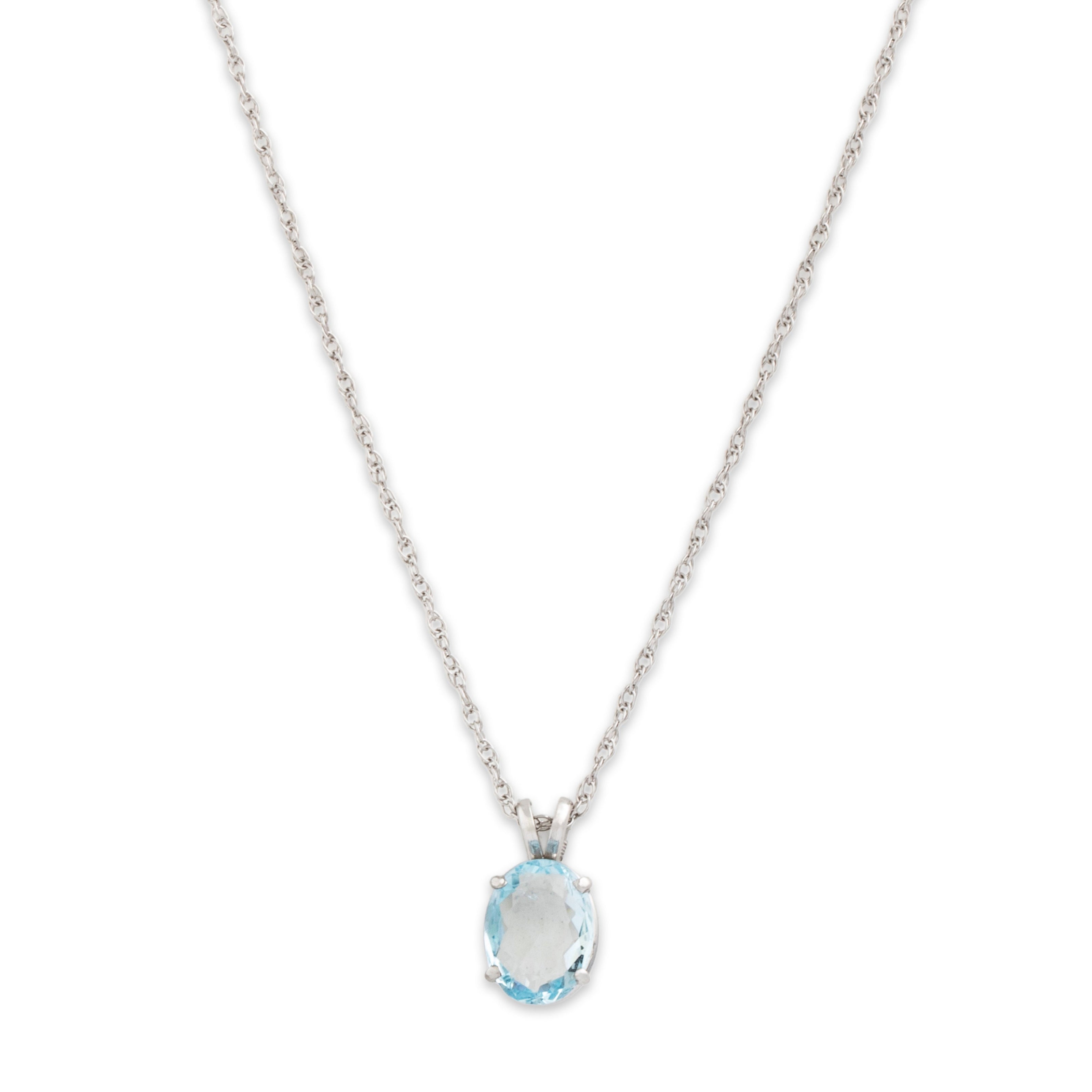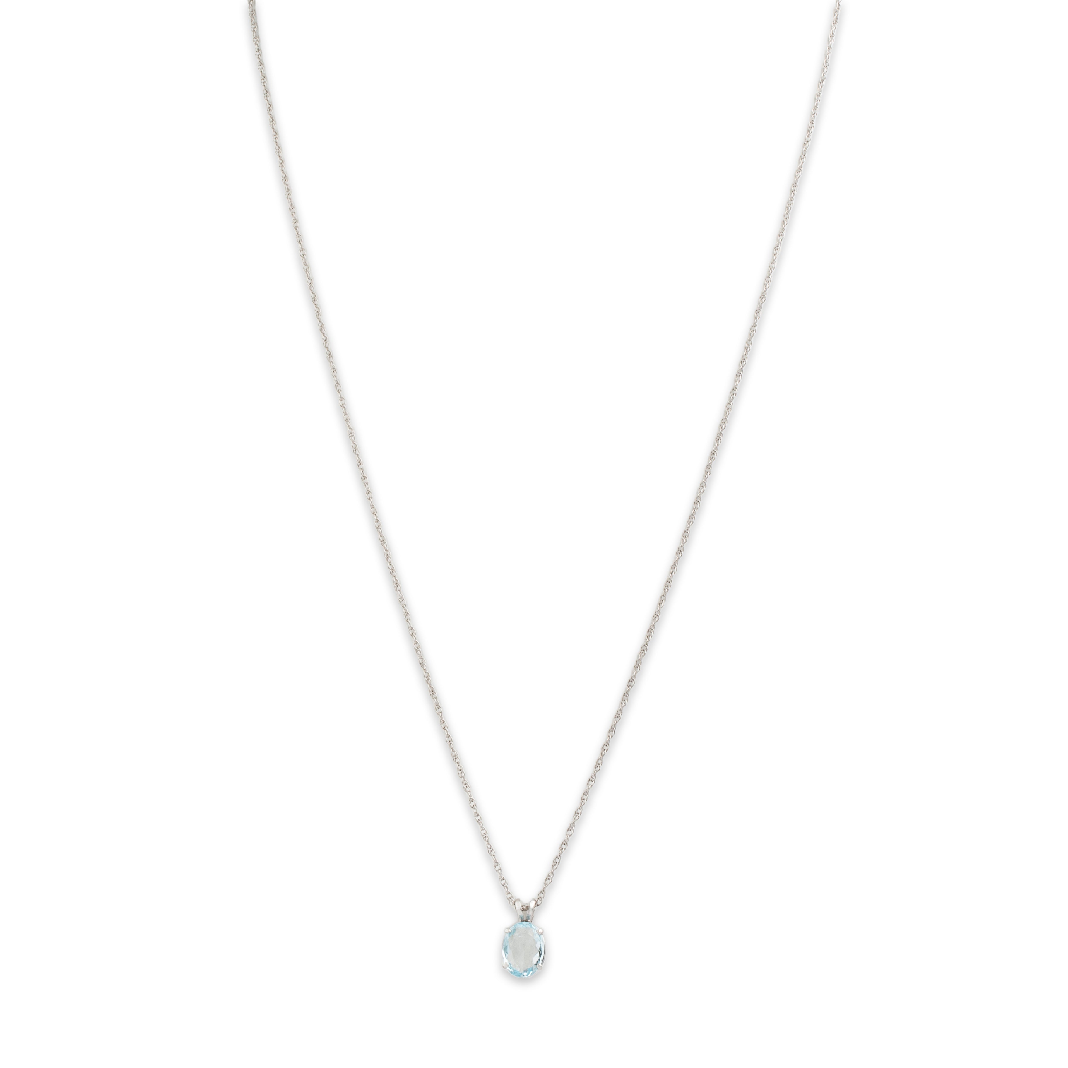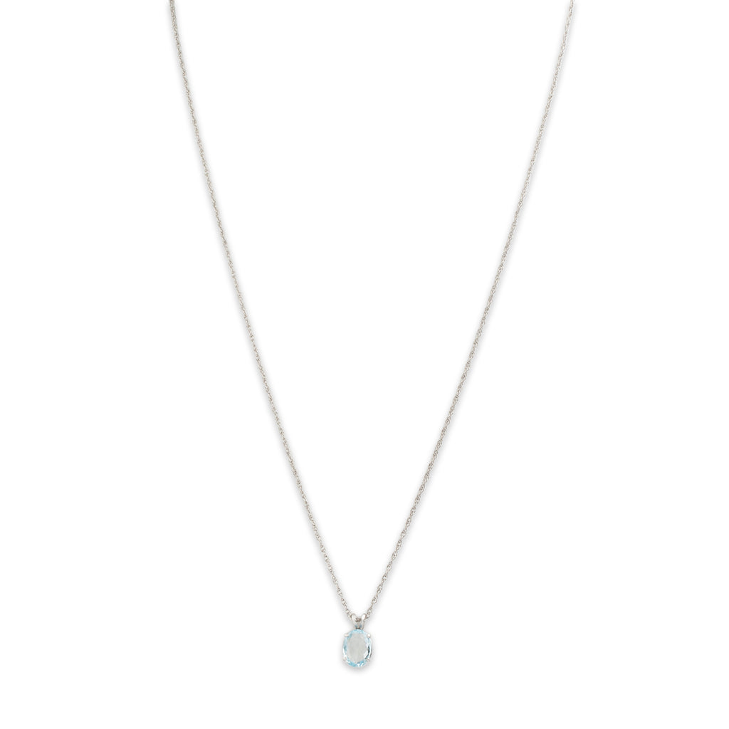 Vintage 14k White Gold 1ct Aquamarine Simple Oval Rope Chain Necklace 18"