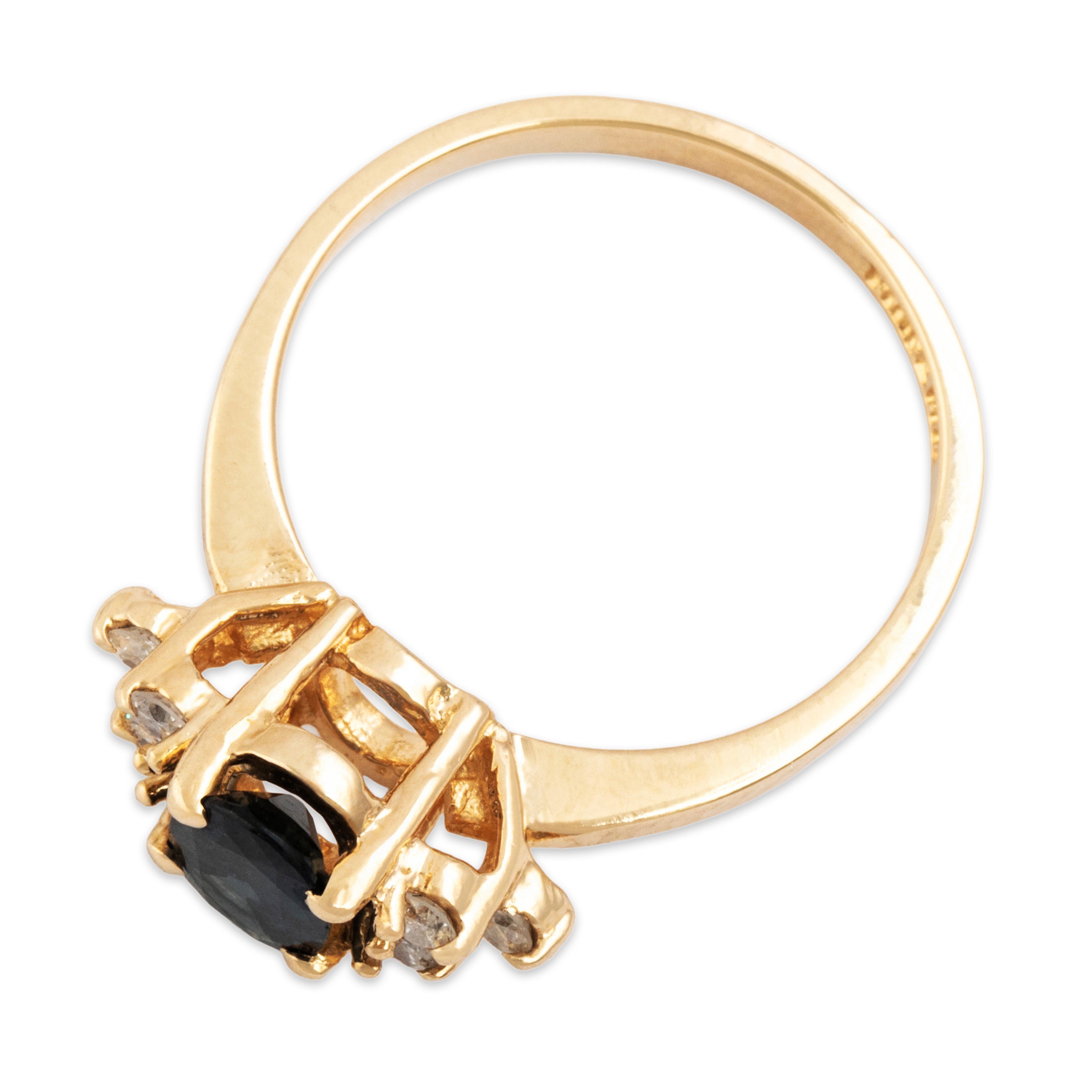 Condition: Very good condition, not eye-visible, seen under 10x magnification: minor nicks to edges of sapphire, two diamonds