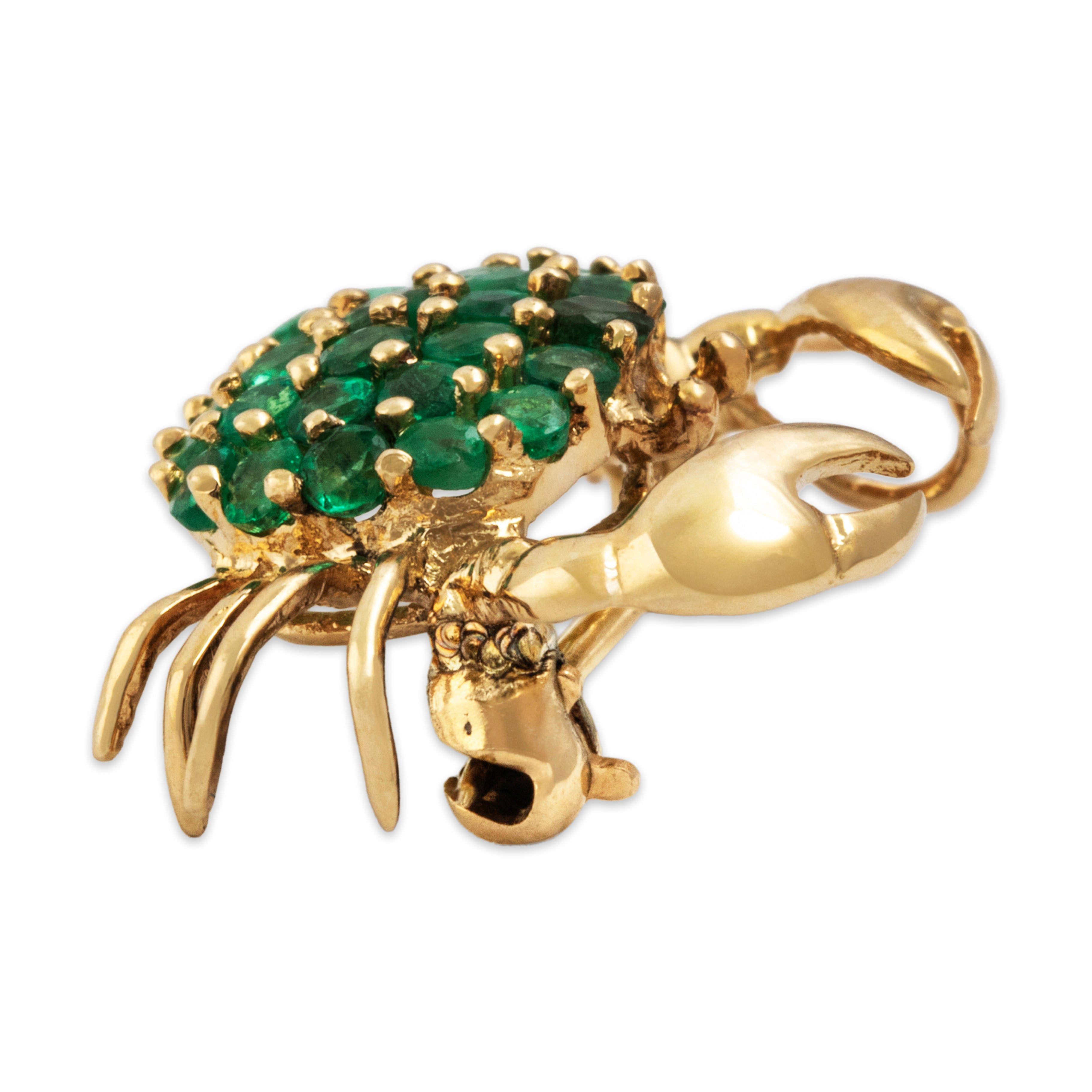 Vintage 14k Yellow Gold Emerald Jaunty Figural Crab Pin / Pendant
