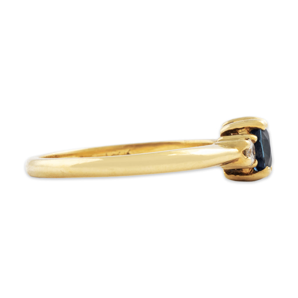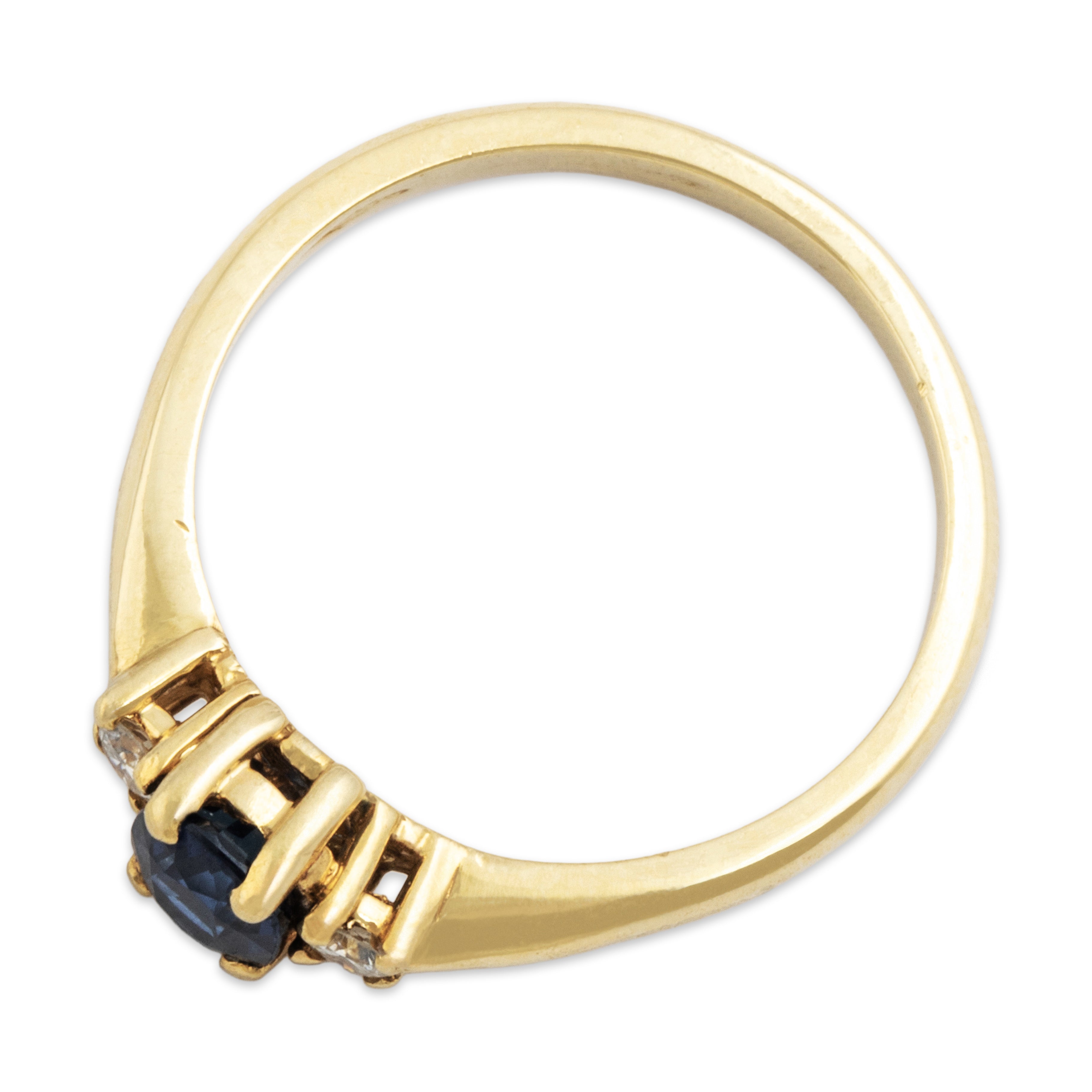 Condition: Very good condition, not eye-visible, seen under 10x magnification: very minor nicks and surface wear to sapphire; minor surface wear to gold