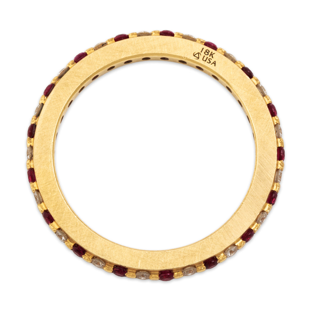 Vintage 18k Yellow Gold Ruby Diamond Dainty Satin Eternity Band Ring 6.25