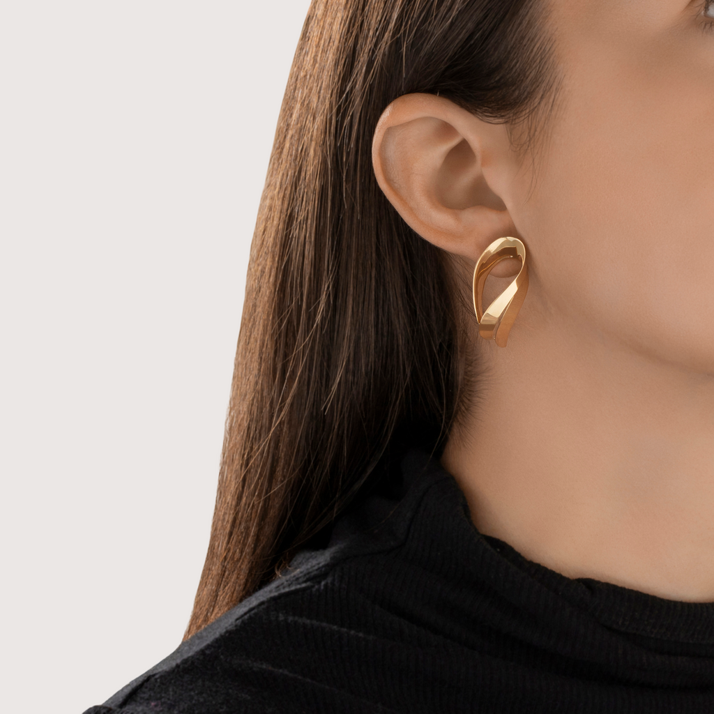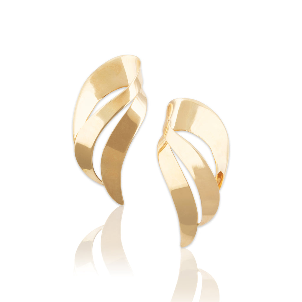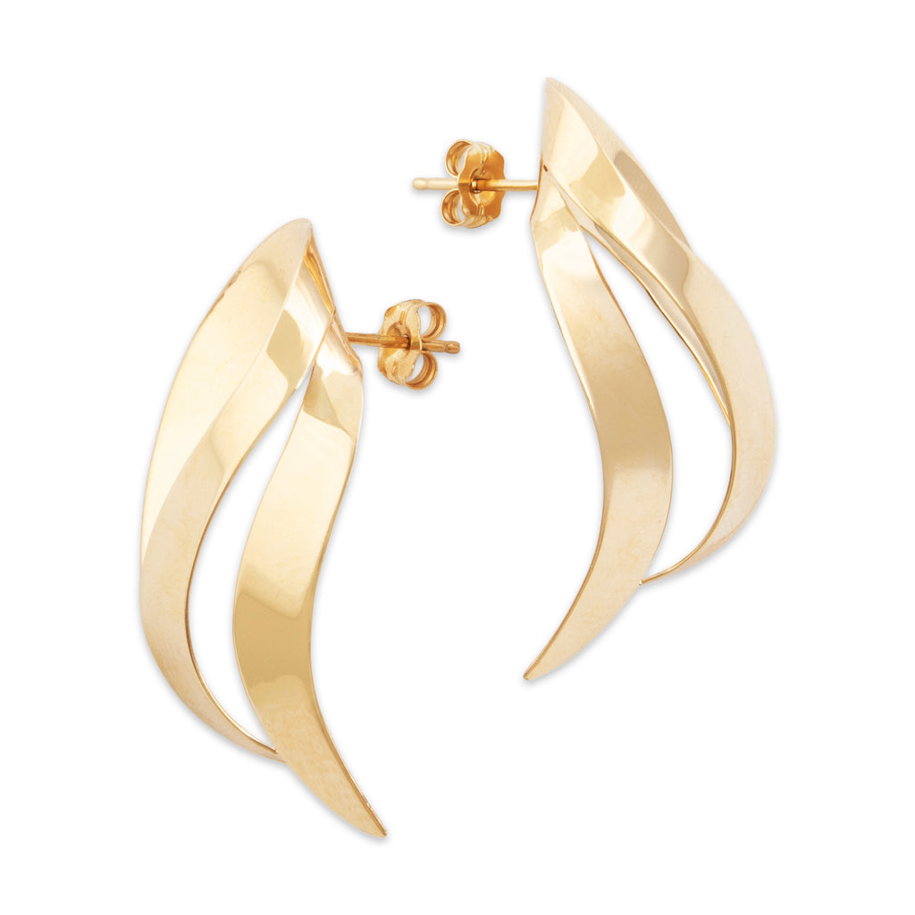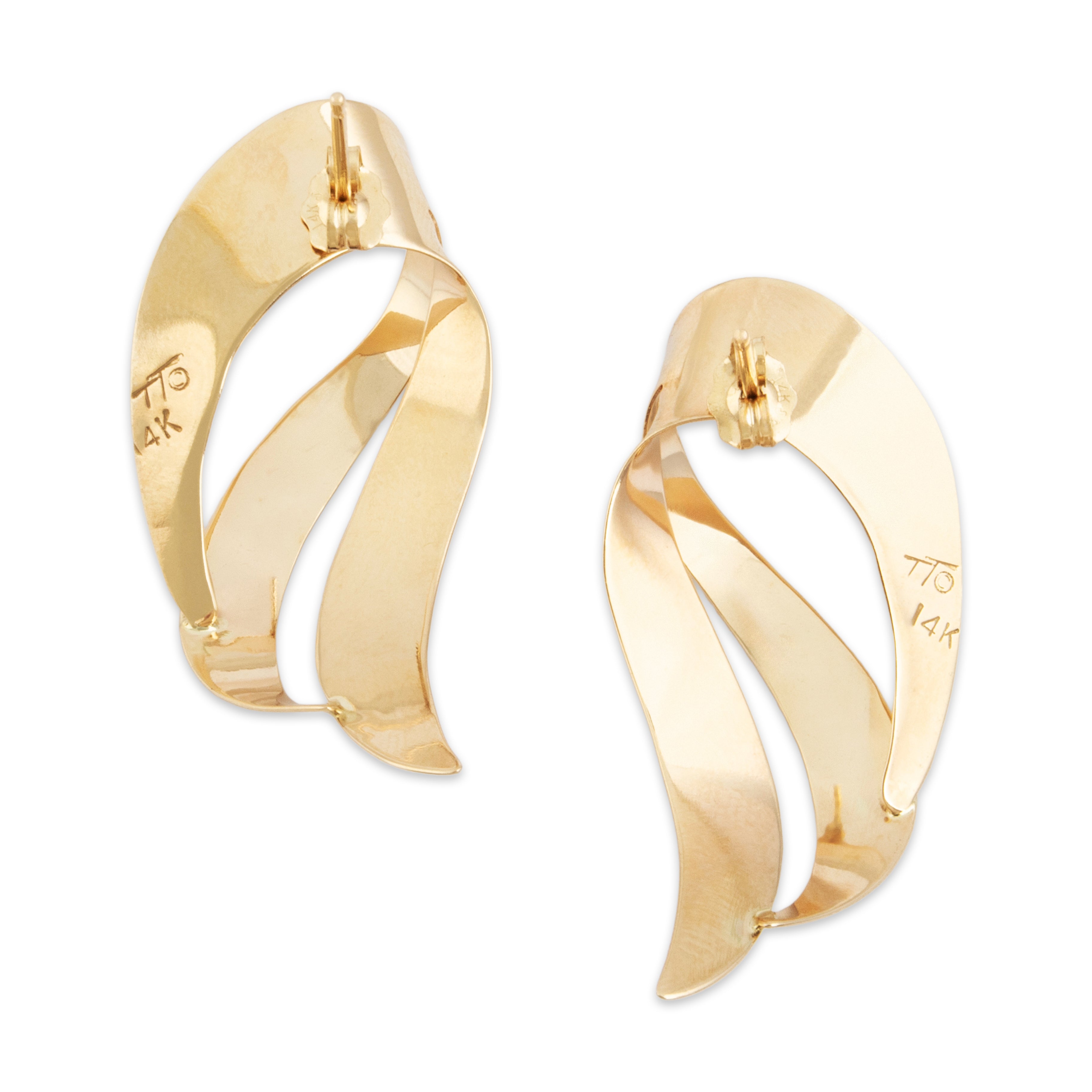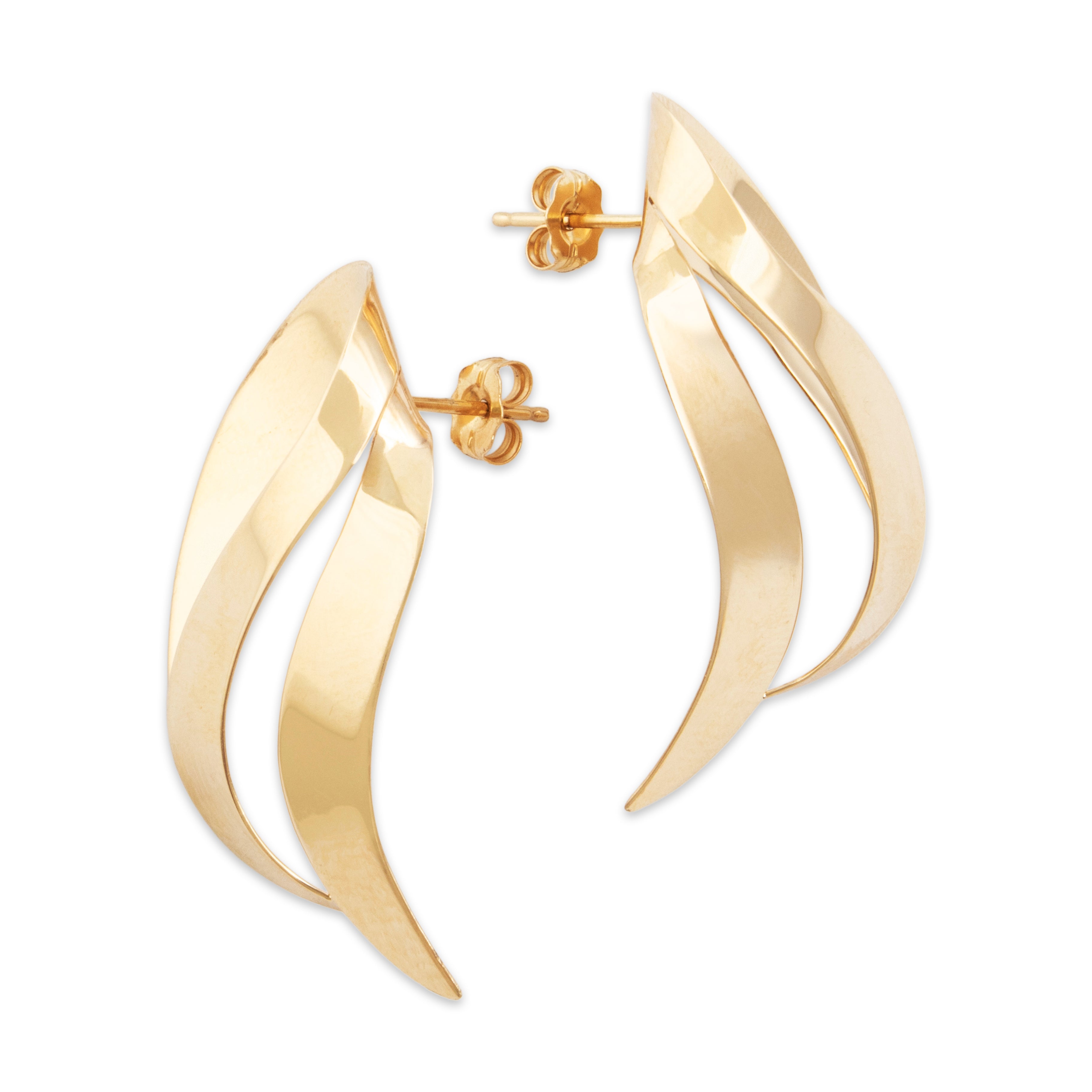 Vintage Large 14k Yellow Gold Sleek Ribbon Swish Stud Earrings