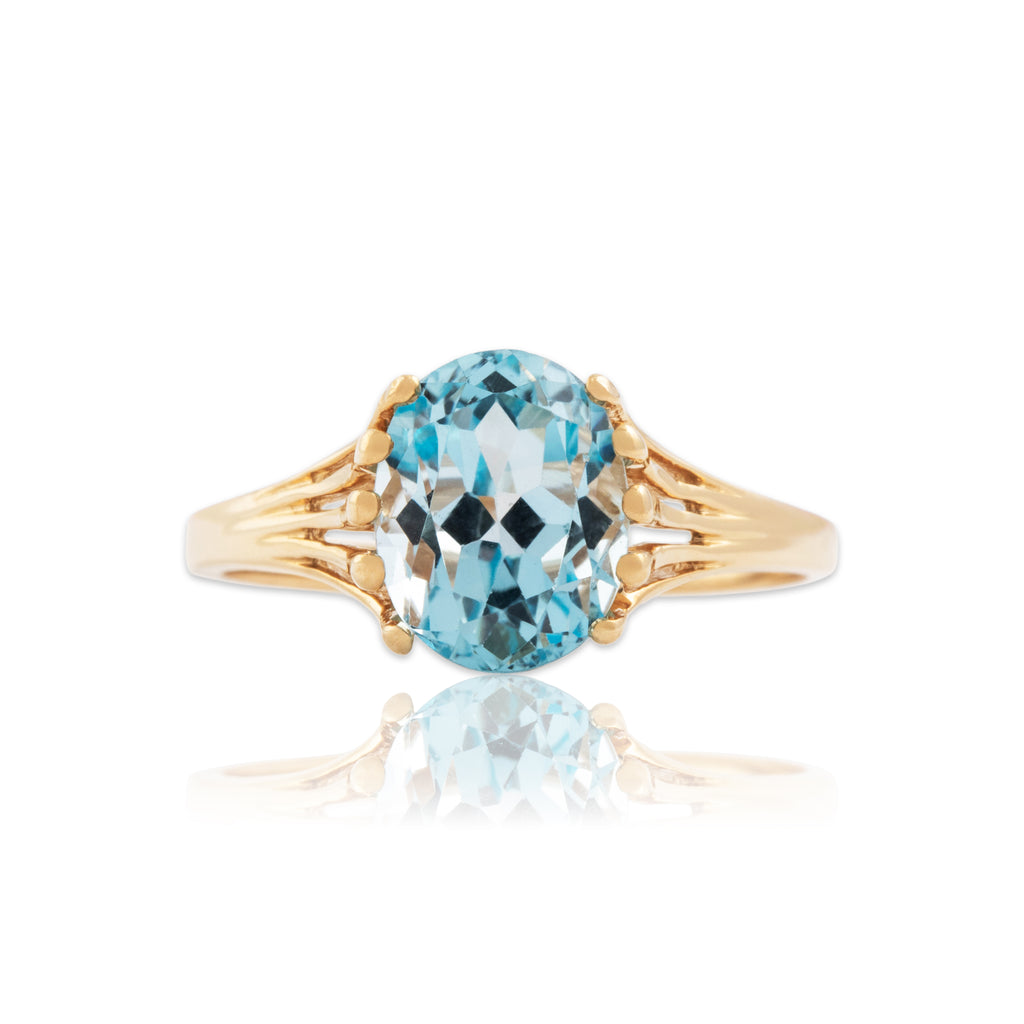 Condition: Very good condition, not eye-visible, seen under 10x magnification: minor nicks to topaz; minor ding to gold