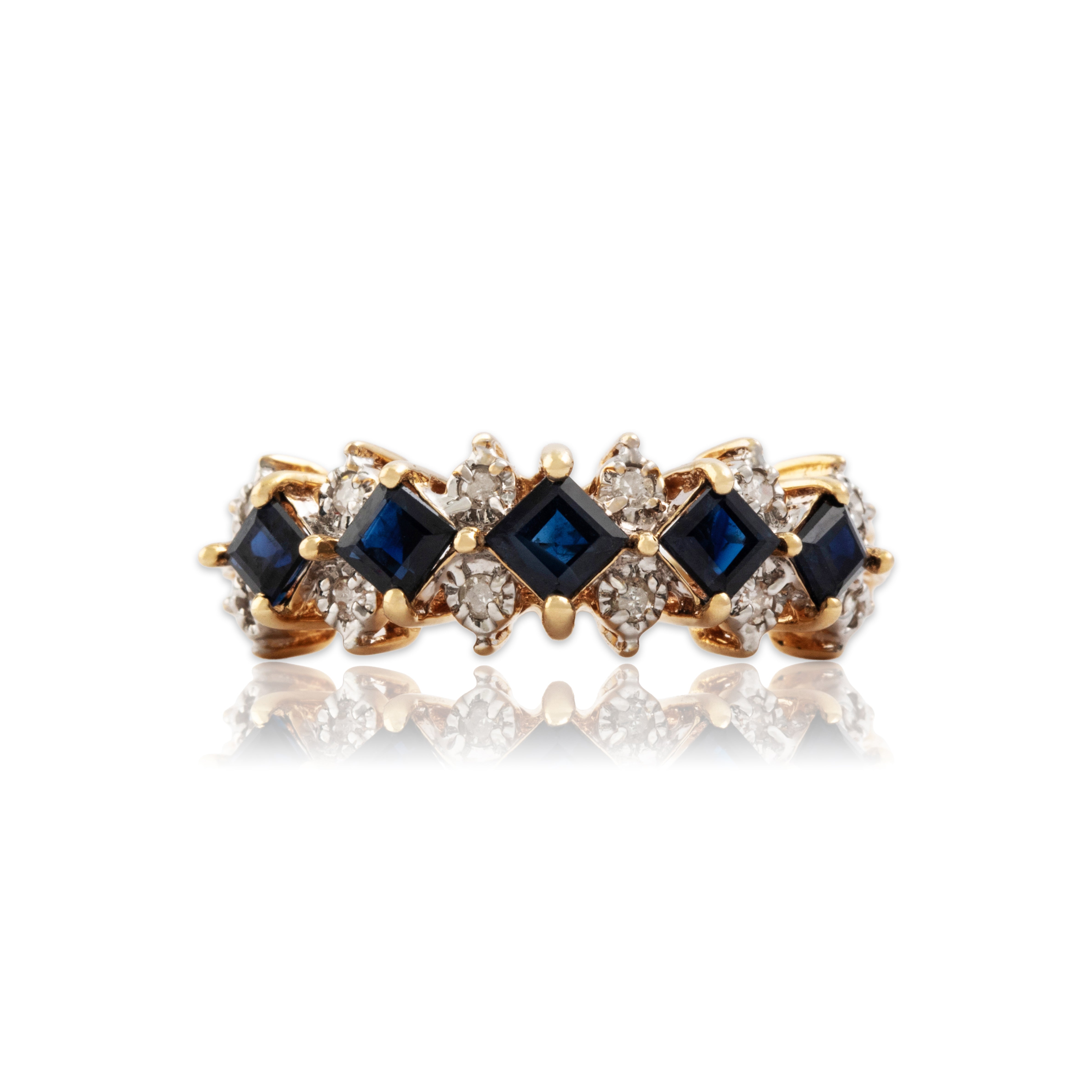 Condition: Very good condition, not eye-visible, seen under 10x magnification: nicks to two sapphires, minor surface wear to other sapphires