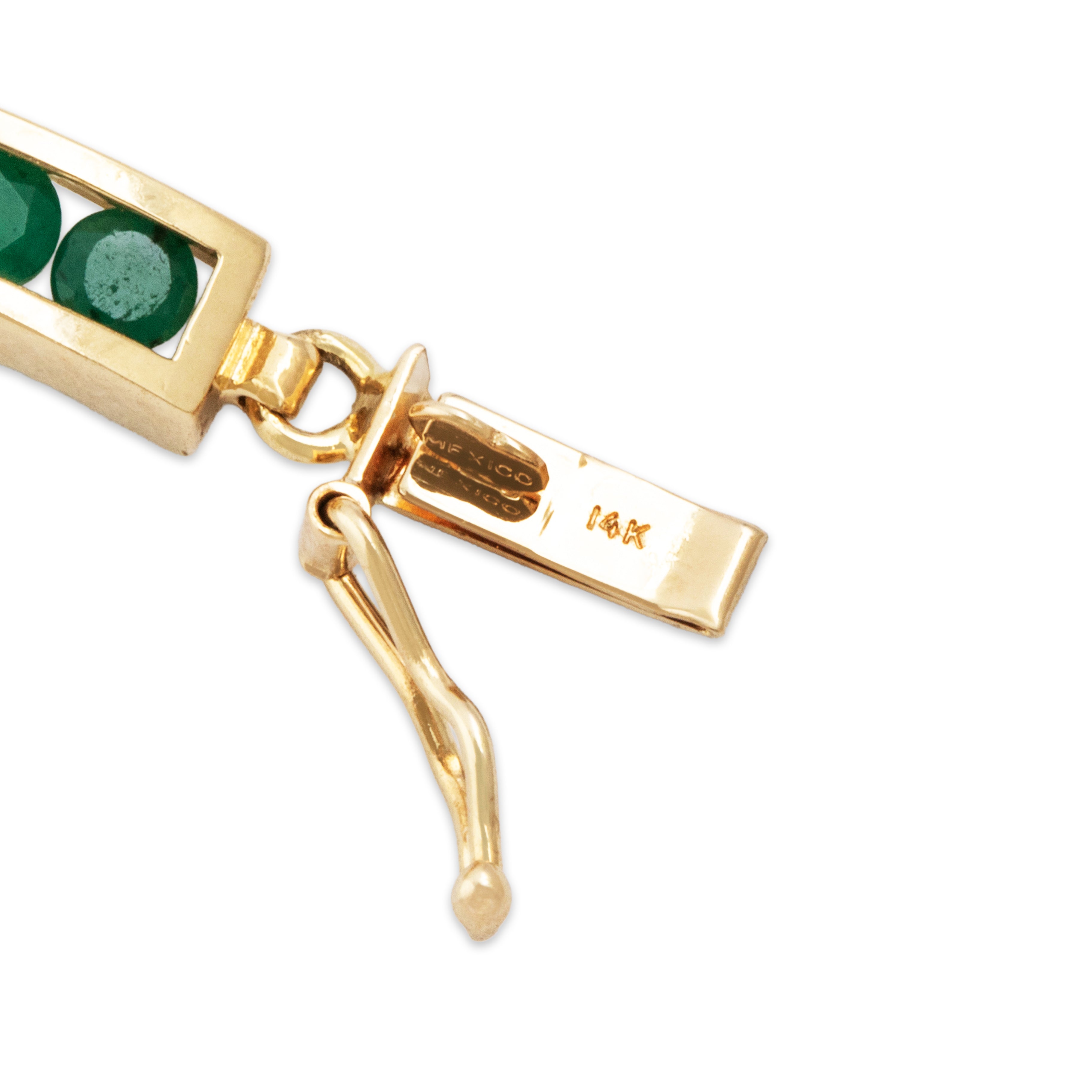 Vintage 14k Yellow Gold Ruby Sapphire Emerald Diamond Line Bracelet 7.25"