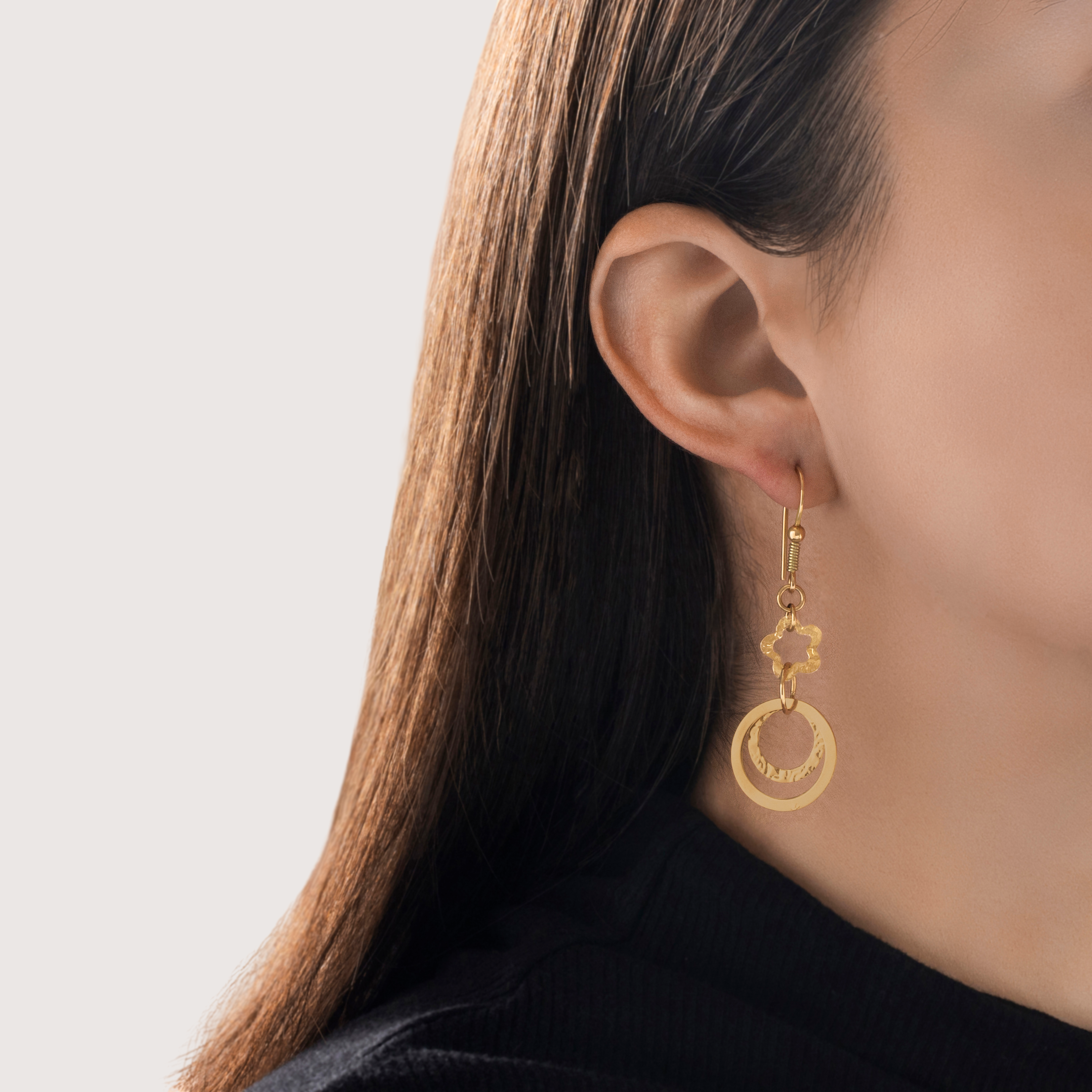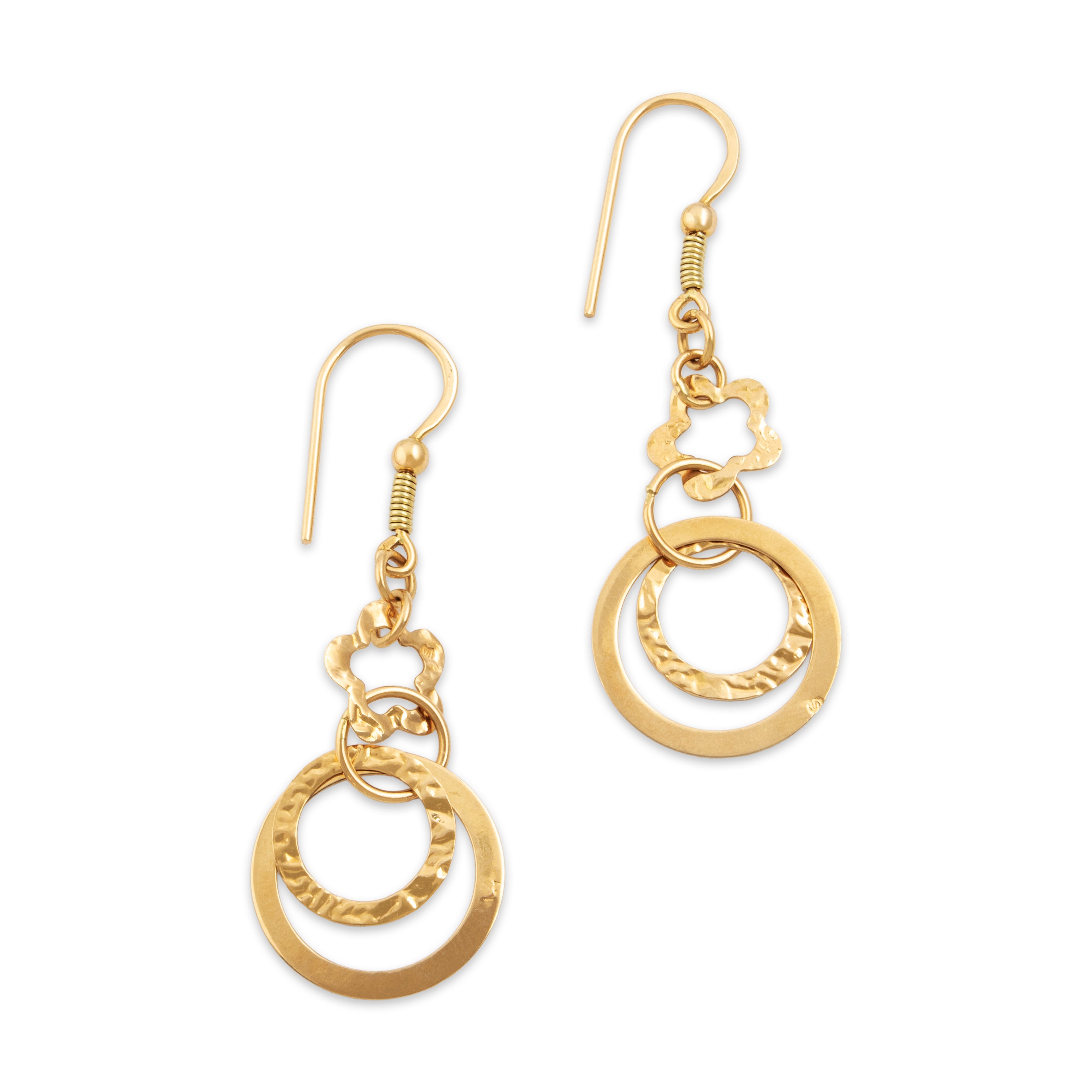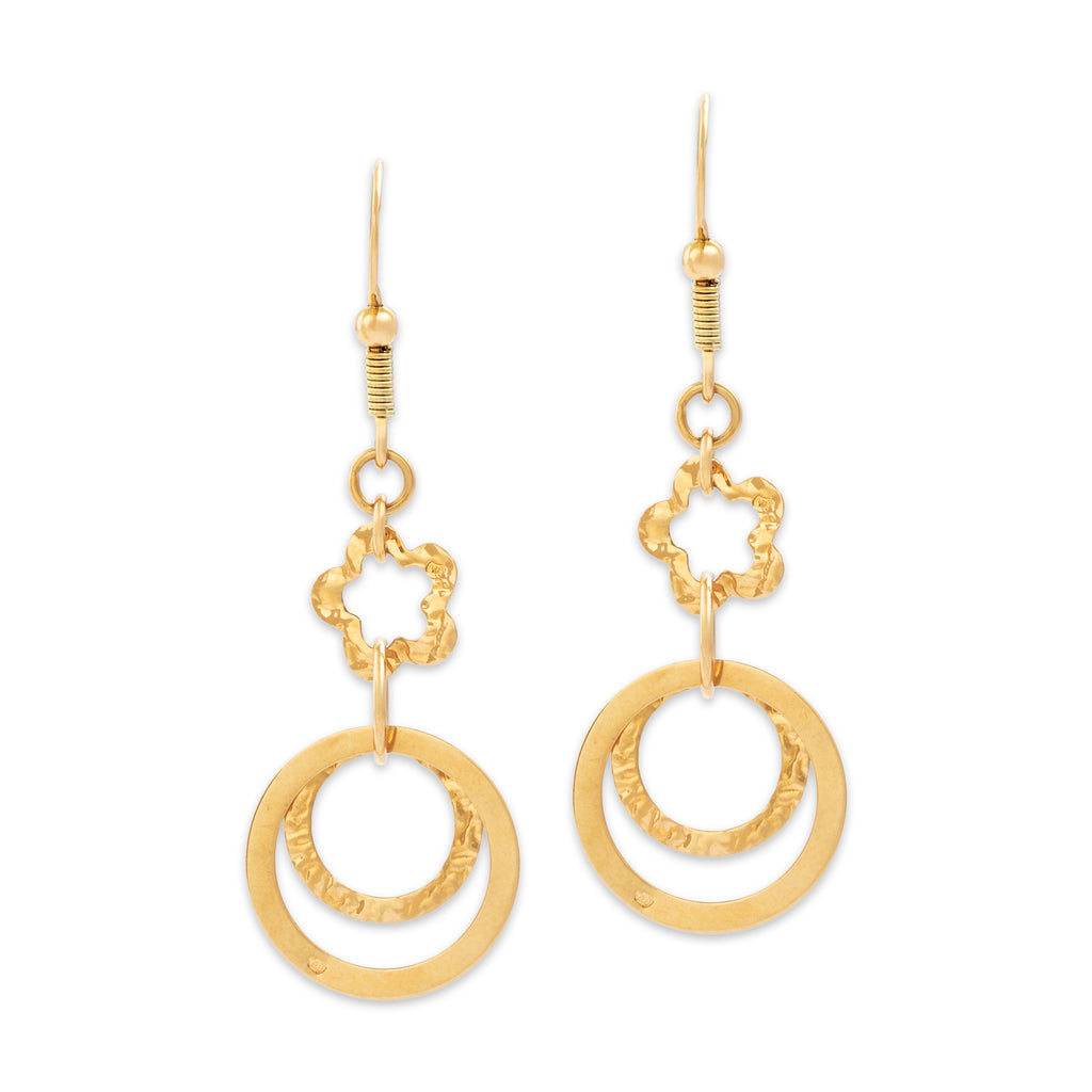 Vintage 18k Yellow Gold Whimsical Looping Flower Long Dangle Earrings