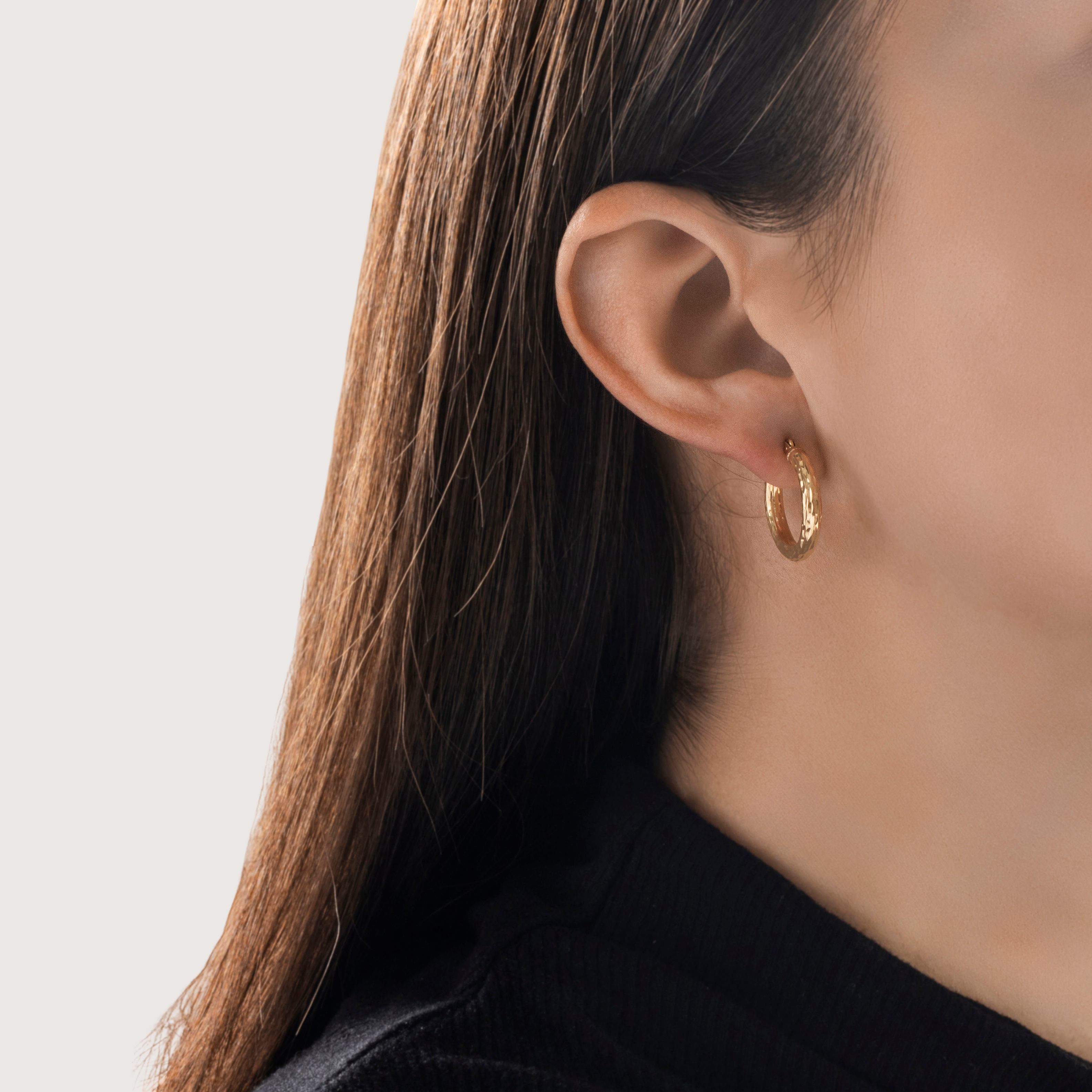 Discover a pair of lightweight 14k yellow gold hoop earrings crafted by a vintage maker in a wonderful textured design.