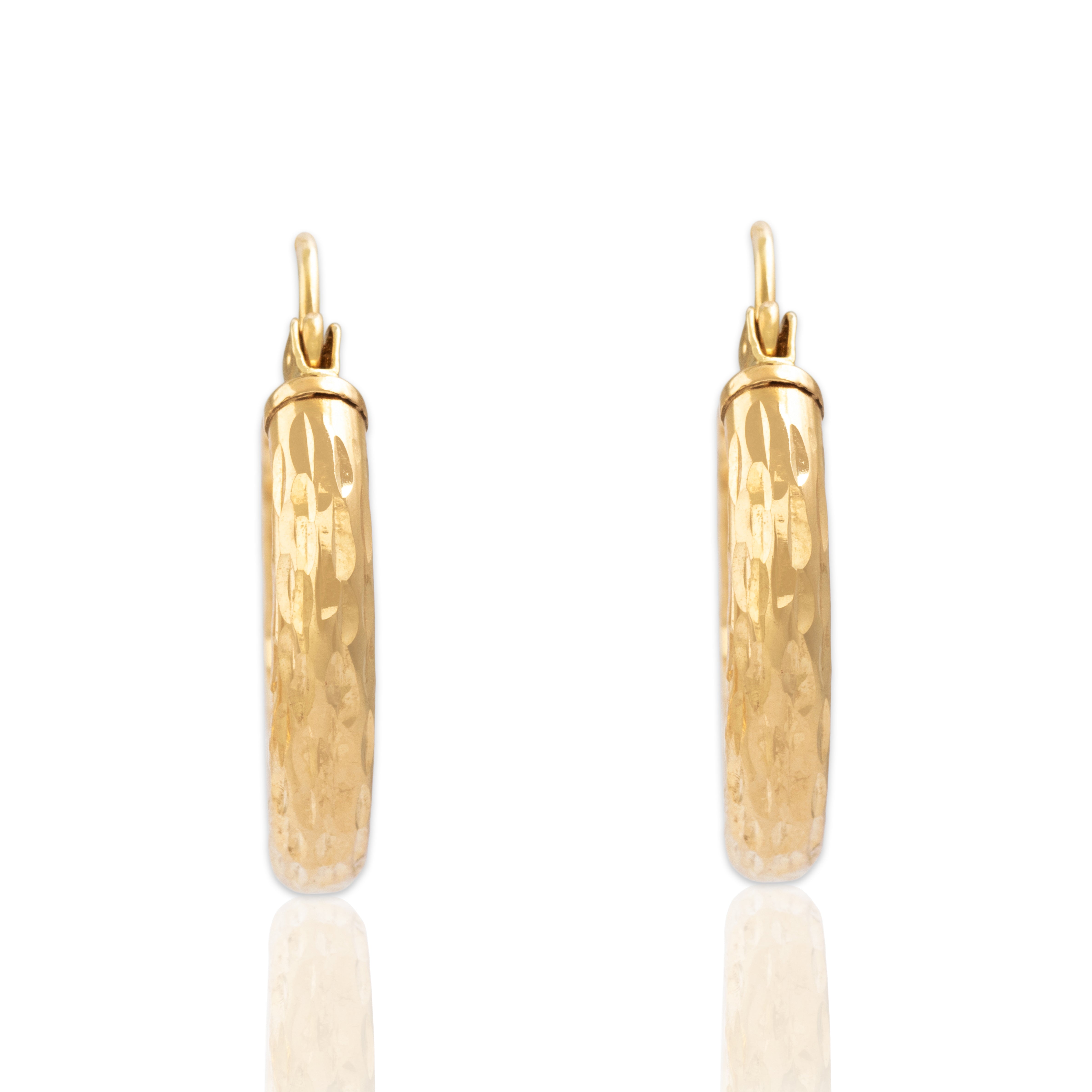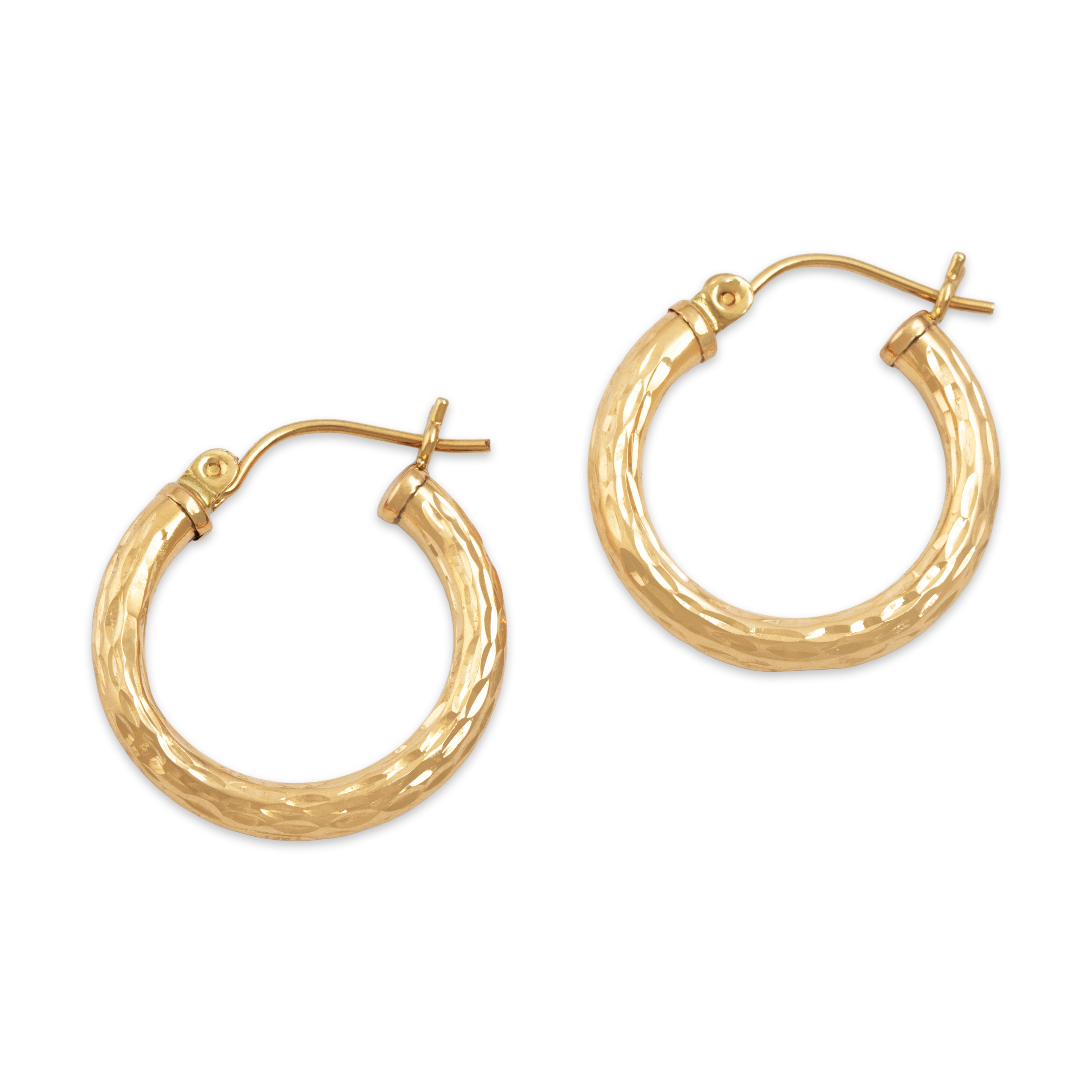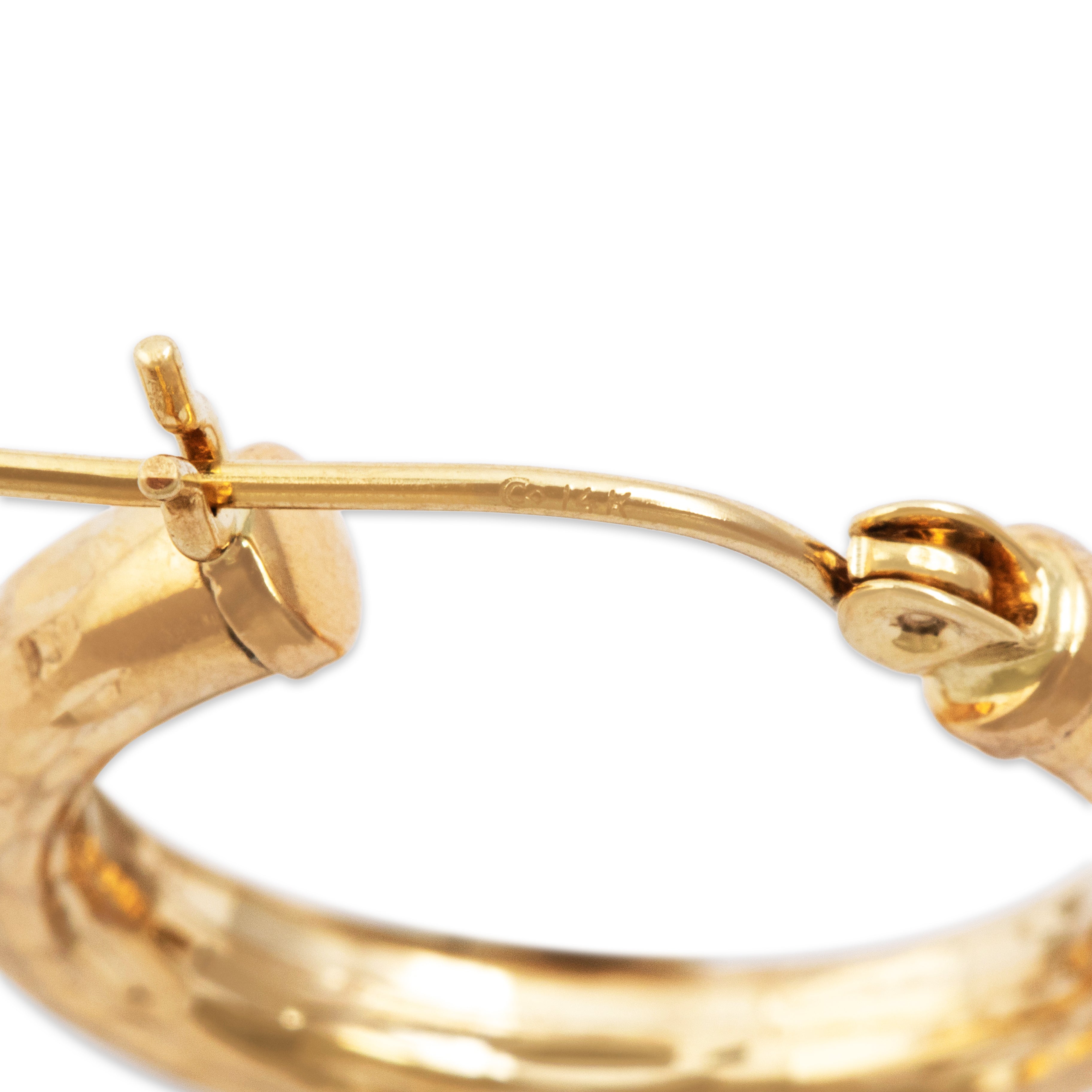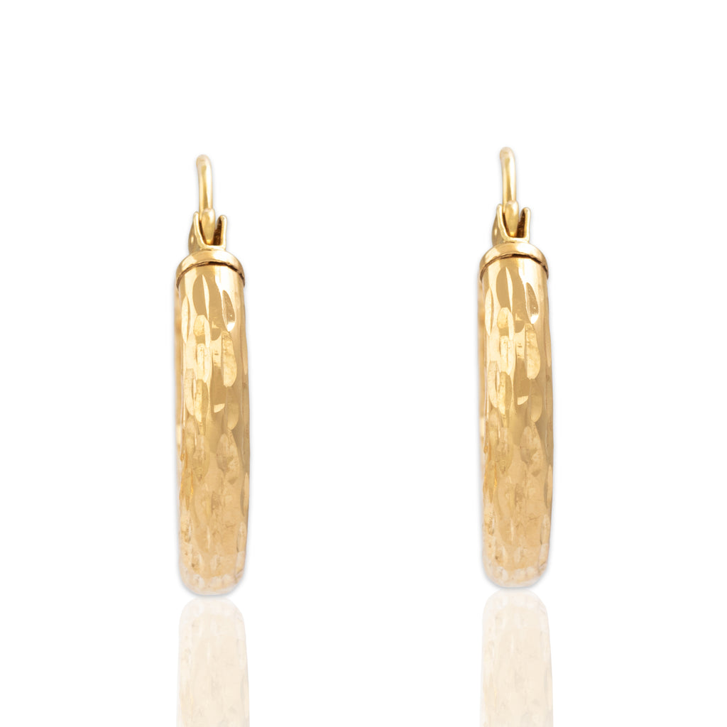 Vintage Lightweight 14k Yellow Gold Simple Textured Hoop Earrings