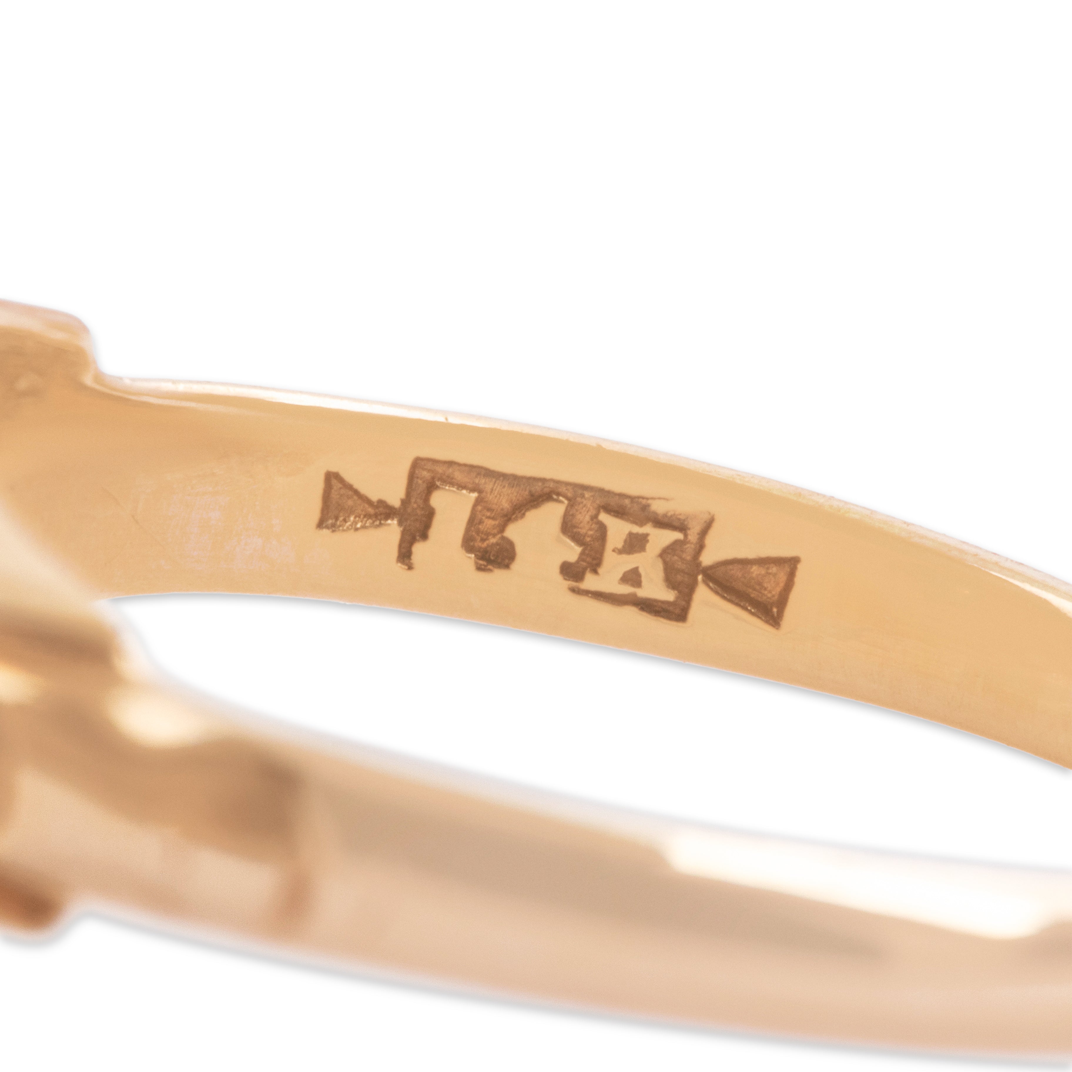 Condition: Very good condition, not eye-visible, seen under 10x magnification: very tiny nick to diamond; some irregularities to gold