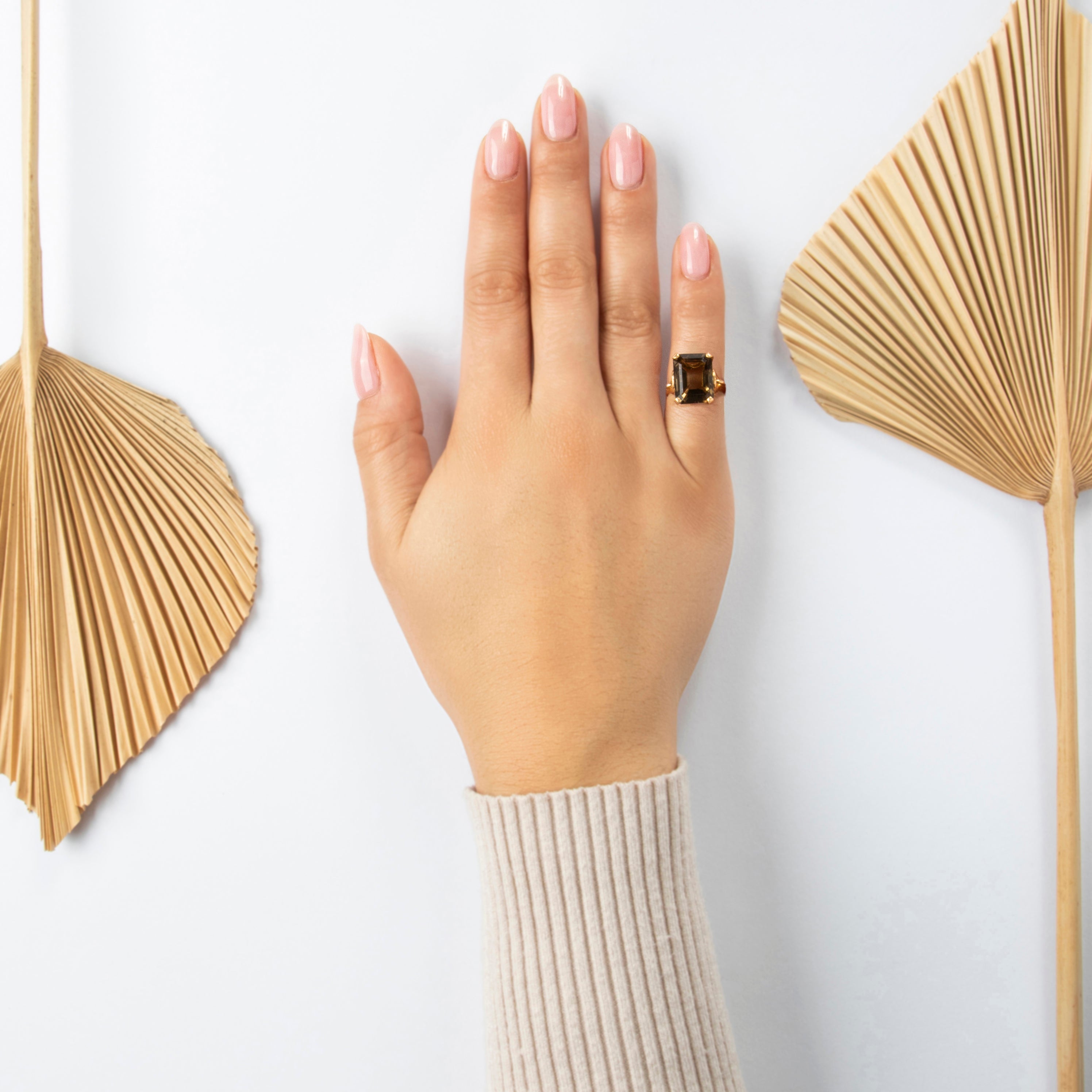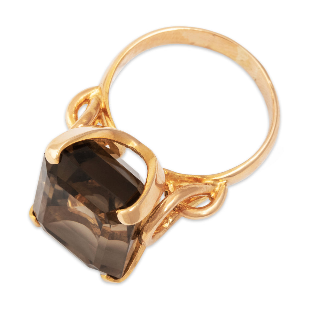 Vintage Large 18k Rosy Yellow Gold 14ct Smoky Citrine Bold Cocktail Ring 7.75