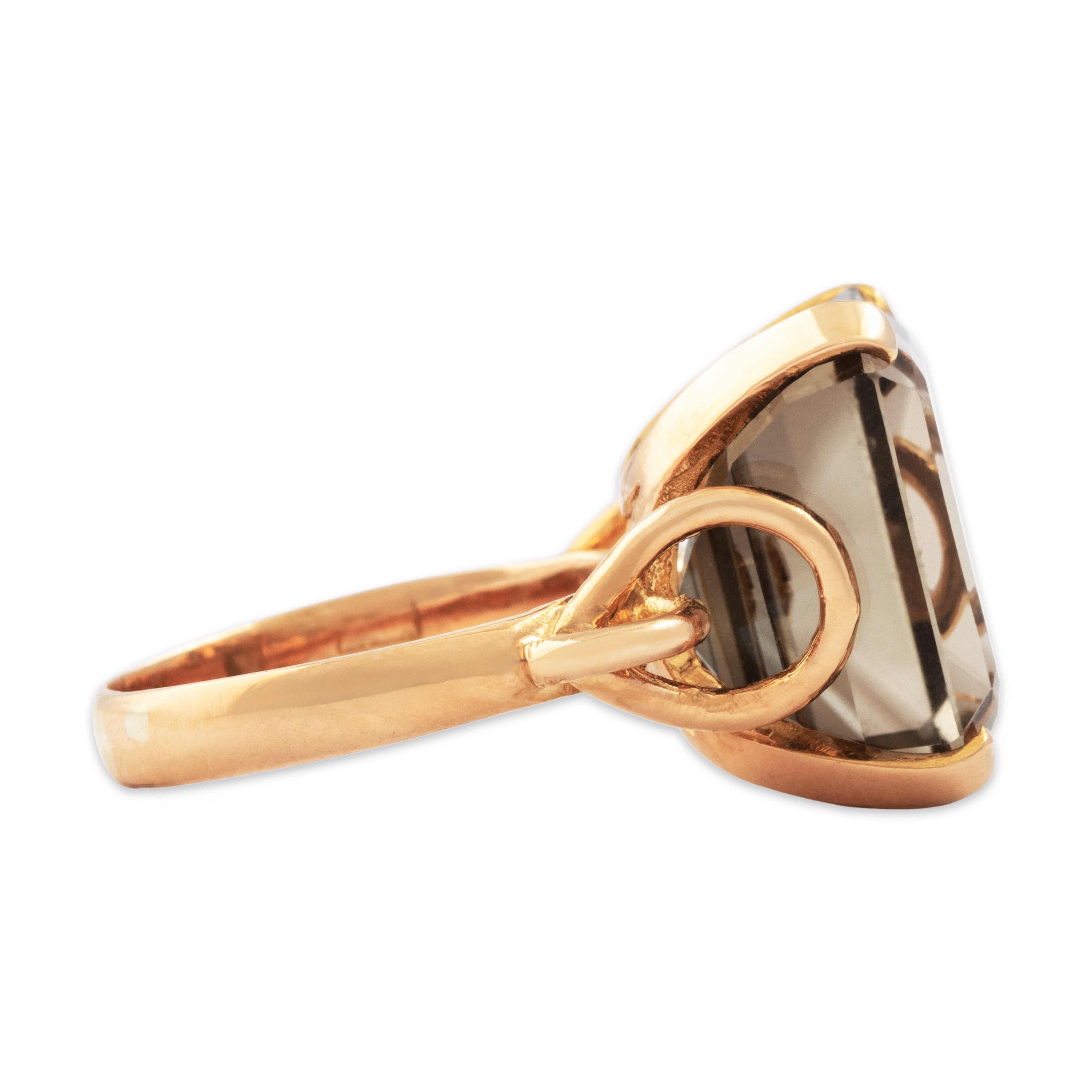 Discover this large 18k rosy yellow gold cocktail ring crafted by a vintage maker in this wonderful bold loop design featuring smoky citrine. All gemstones are natural, earth mined stones, unless stated otherwise.