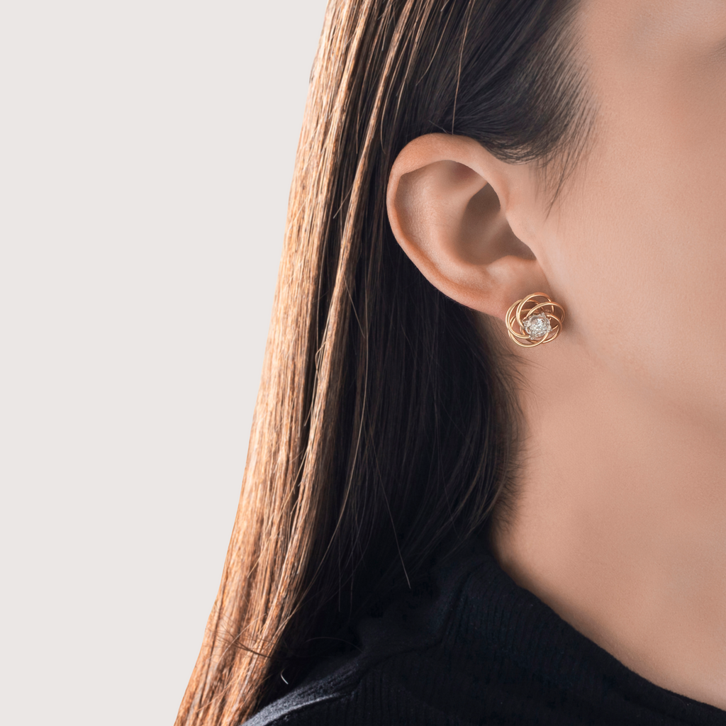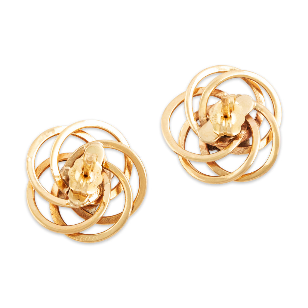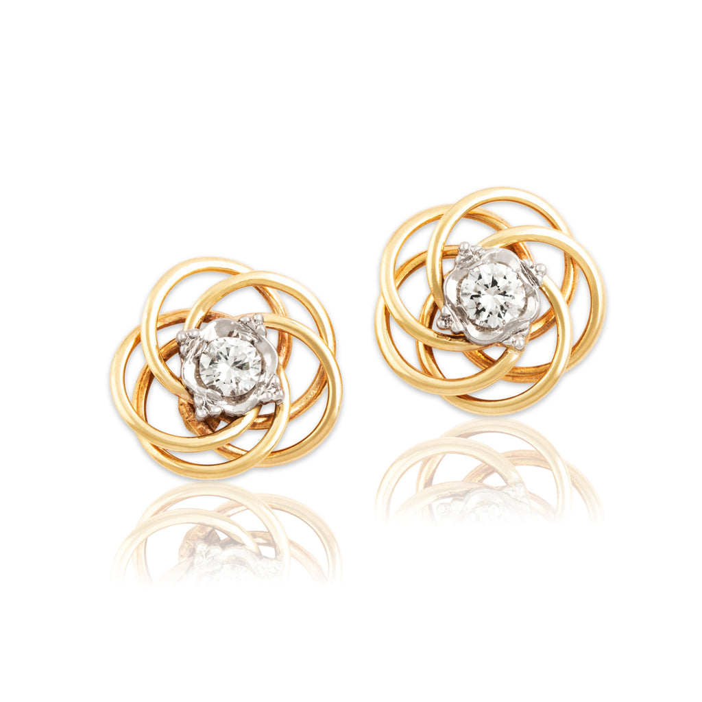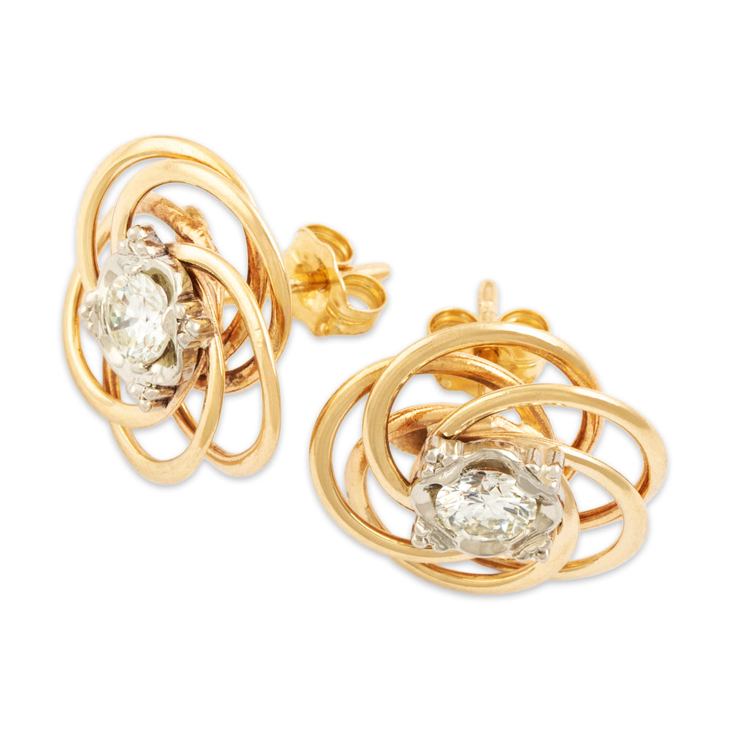 Discover a pair of 14k yellow gold stud earrings crafted by a vintage maker in this wonderful stunning interlocking loop design featuring diamond. All gemstones are natural, earth mined stones, unless stated otherwise.