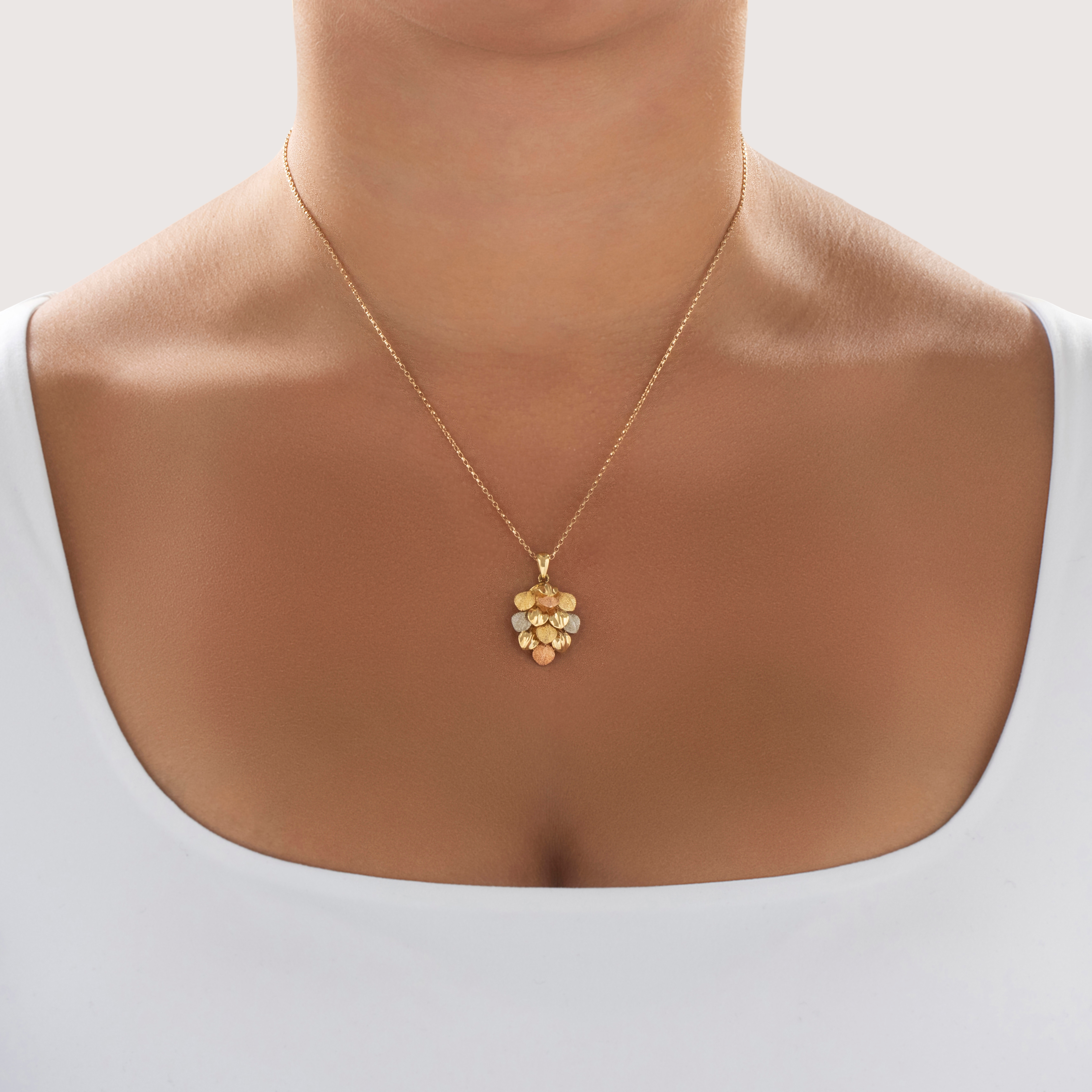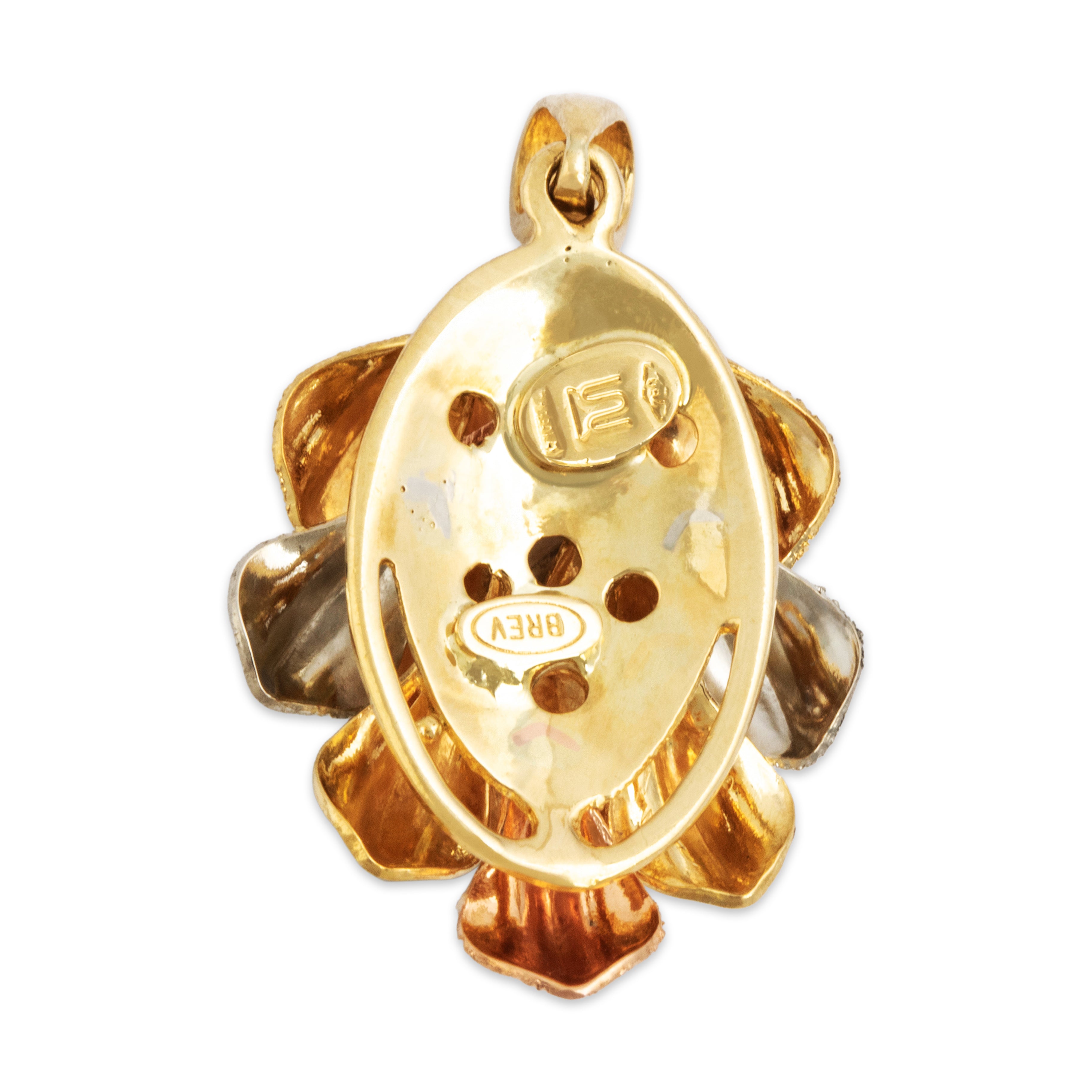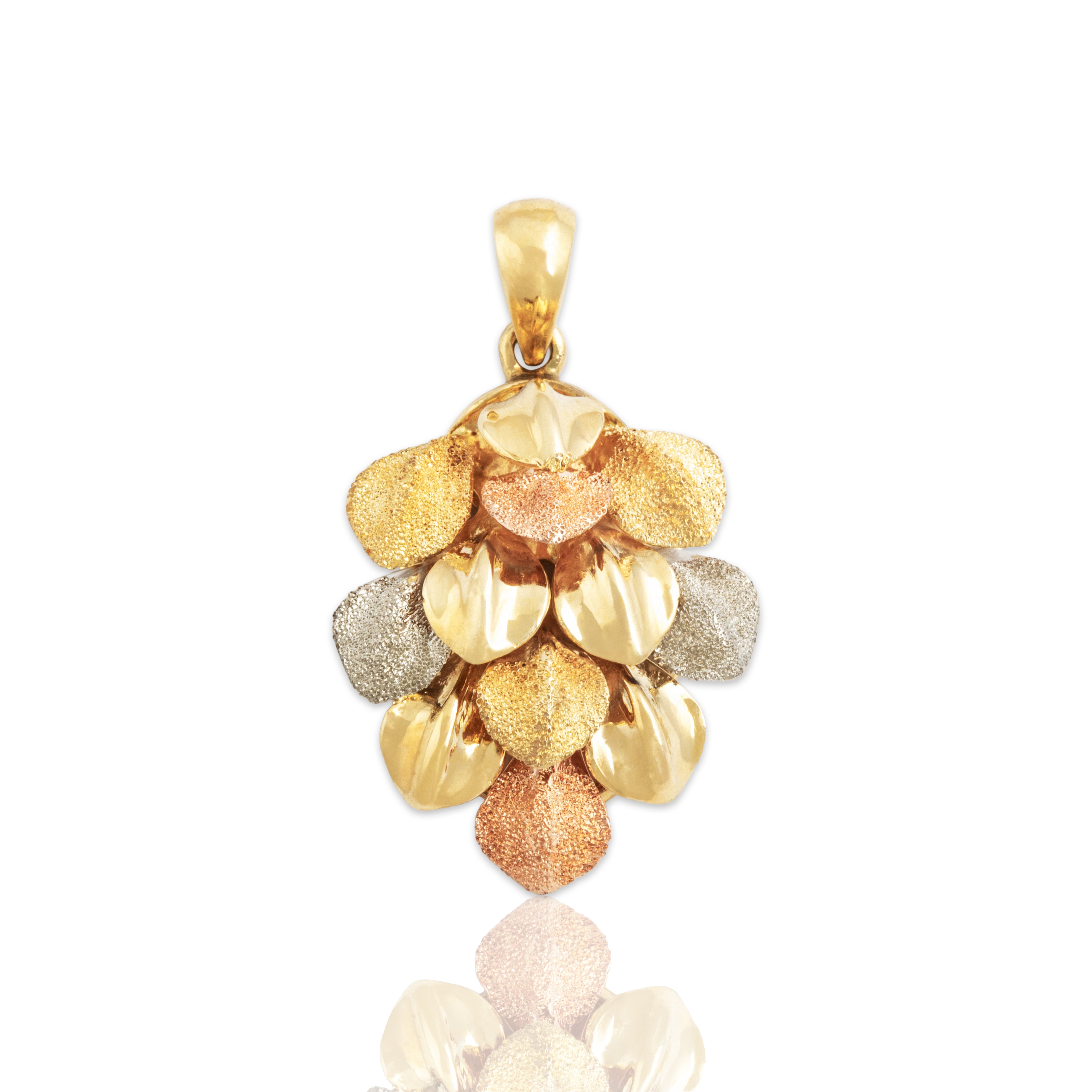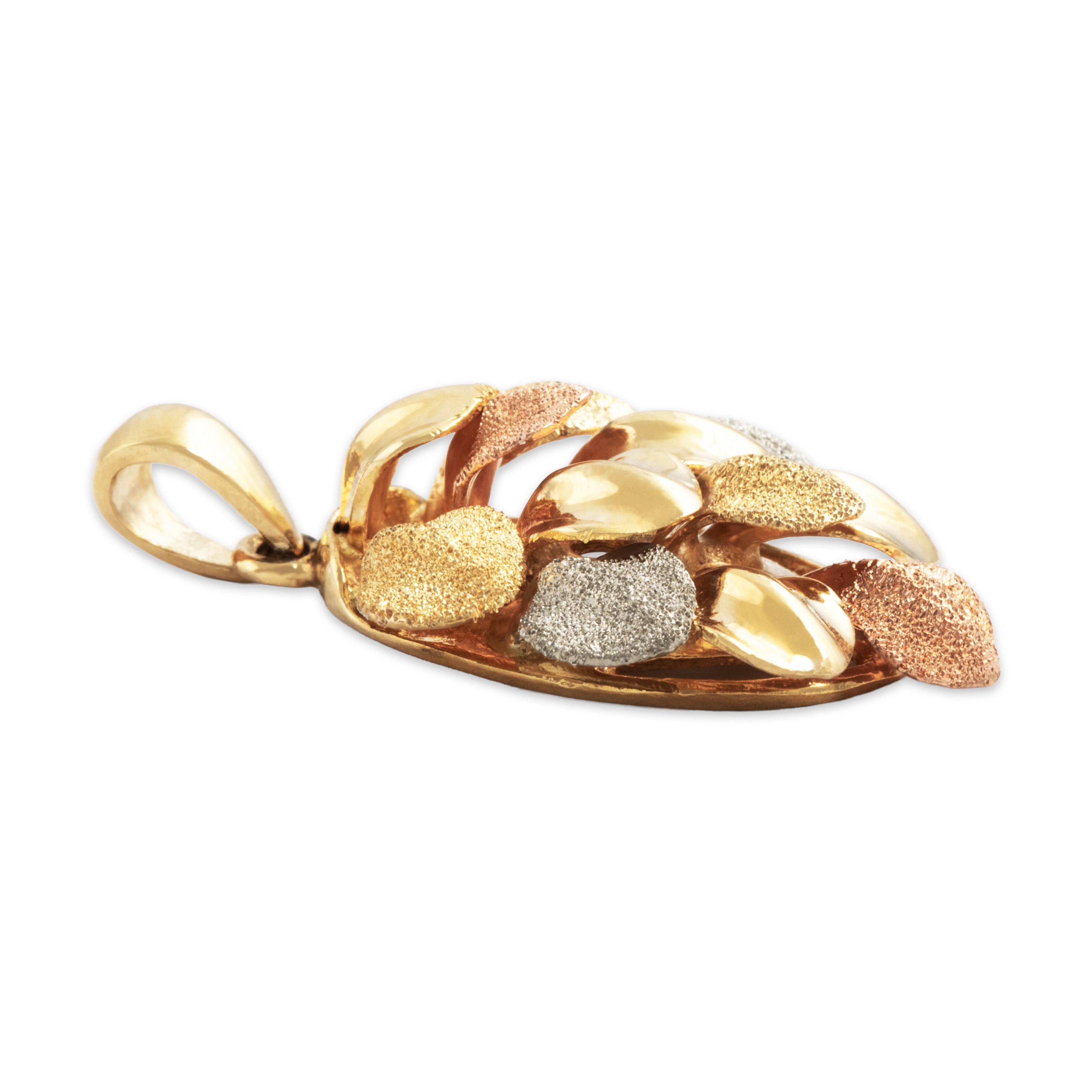 Vintage 18k Tricolor Gold Textured Leafy Cluster Pendant