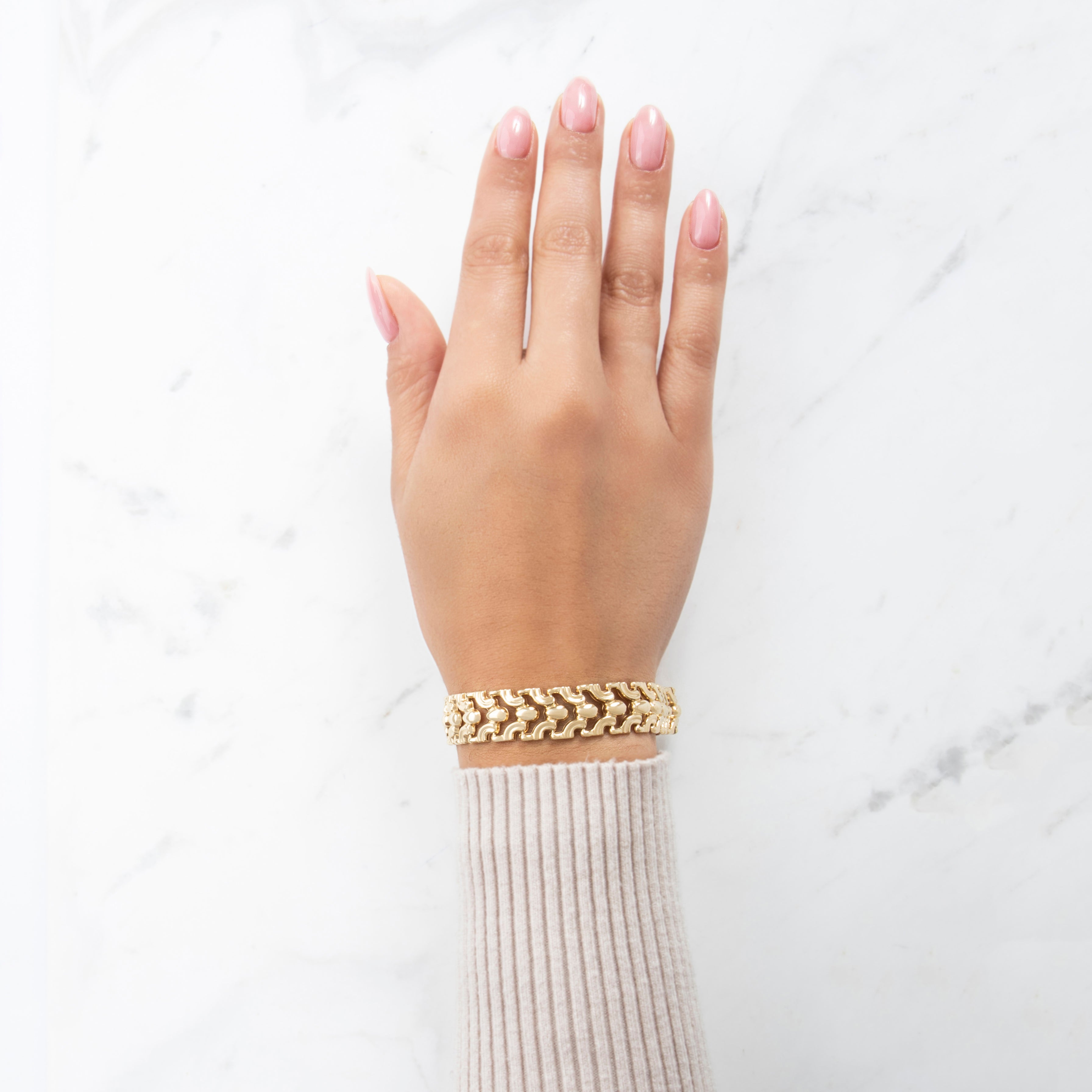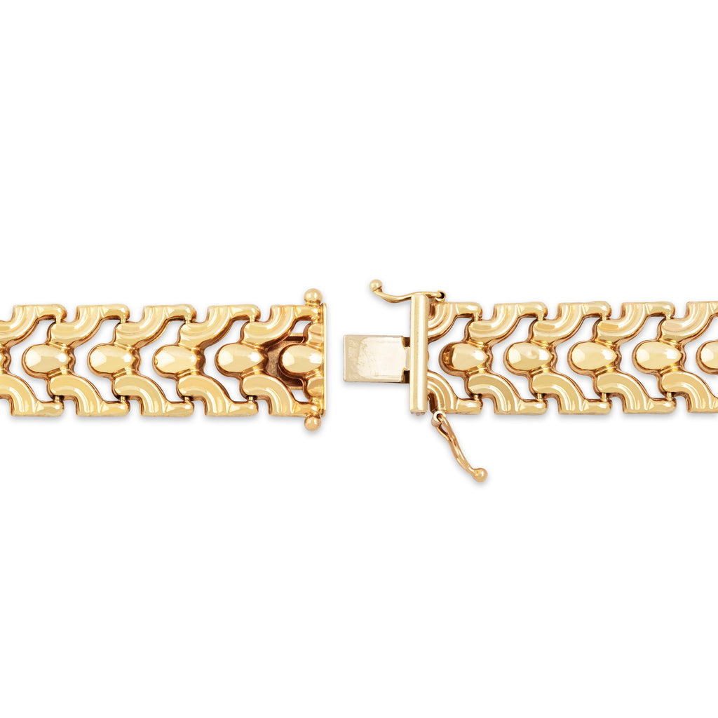 Condition: Very good condition, minor dings to a few links, minor wear to gold