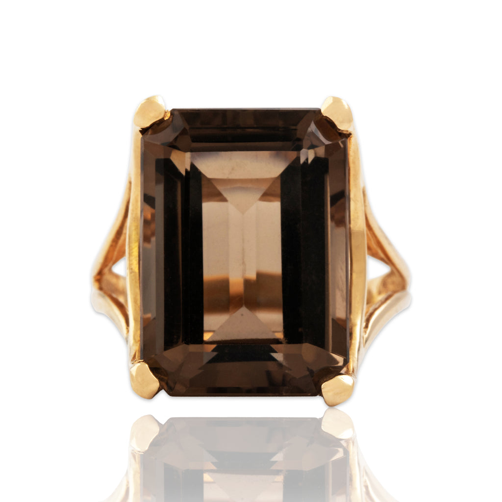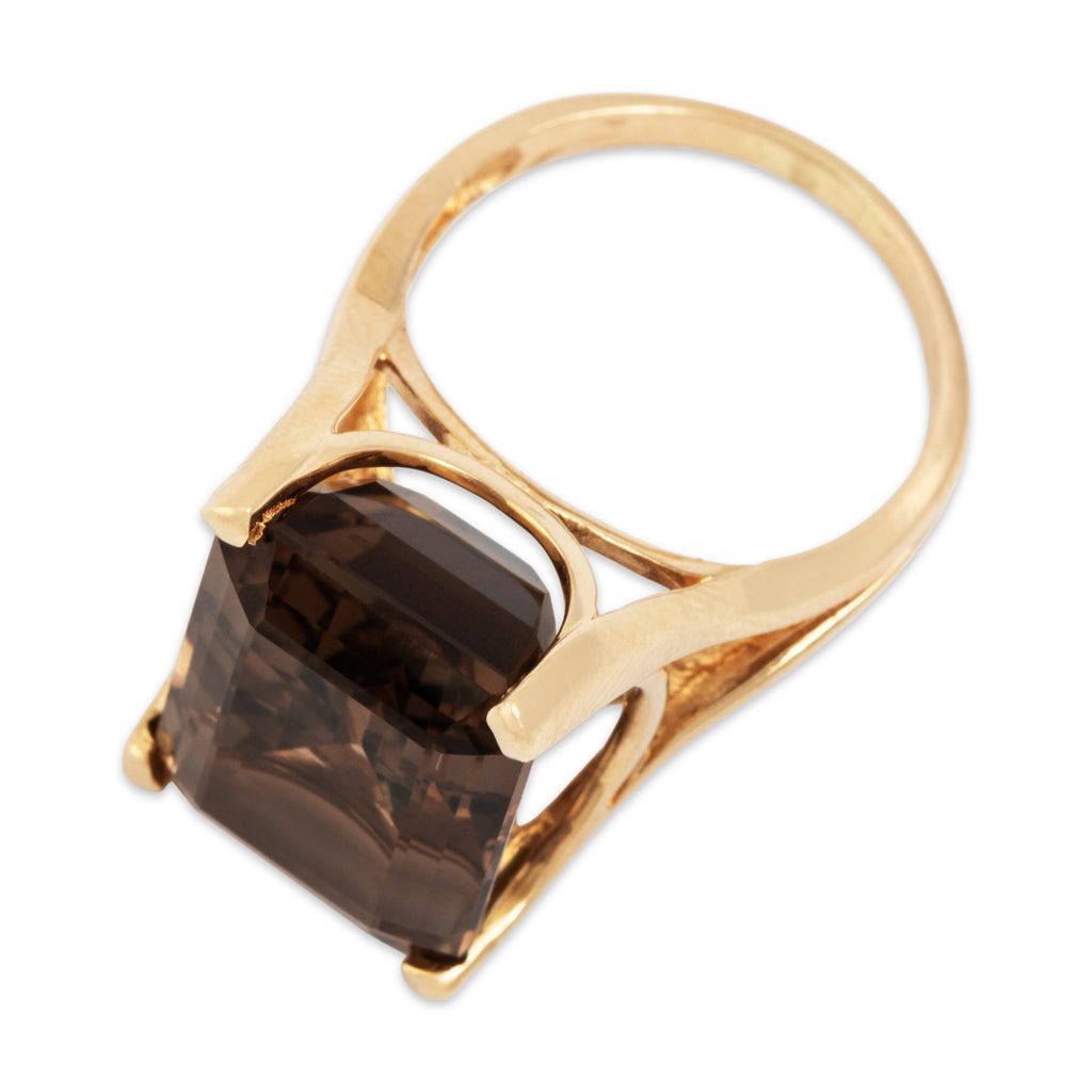 Vintage Large 14k Yellow Gold 15ct Smoky Quartz Incredible Cocktail Ring 8.00