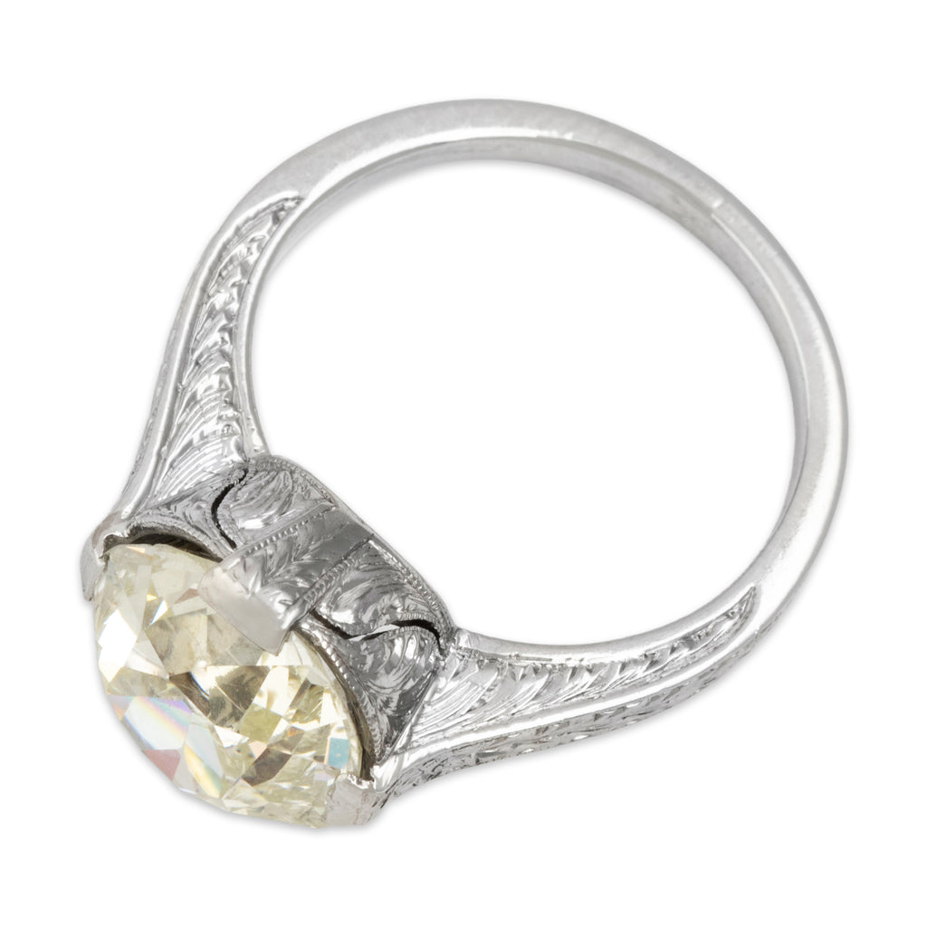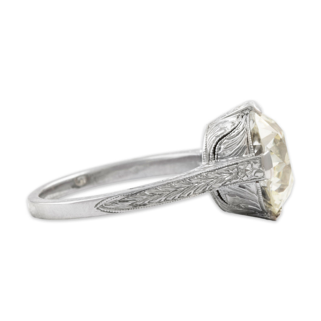 Vintage Platinum 3.34ct Old Mine Cut Diamond Exceptional Engraved Ring 4.00