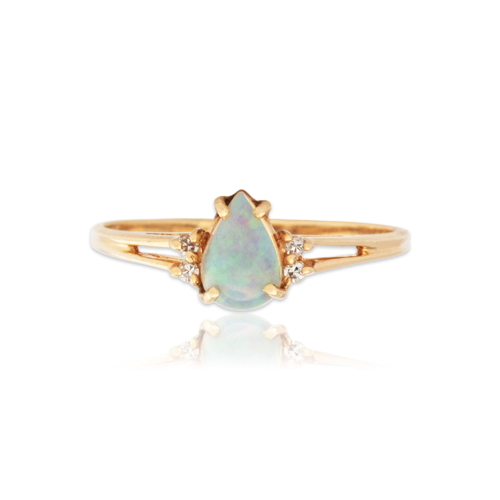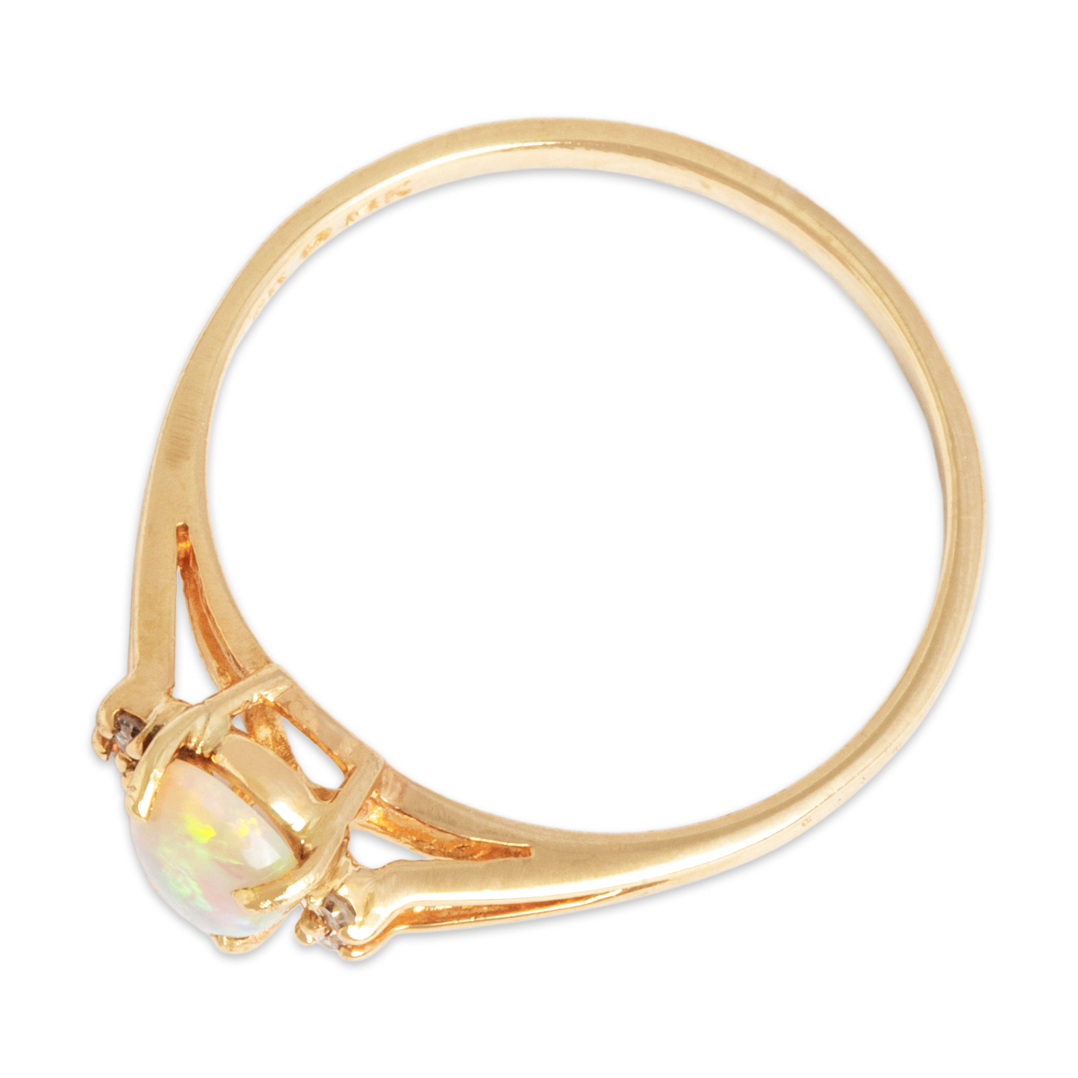 Condition: Very good condition, not eye-visible, seen under 10x magnification: minor surface wear to opal, tiny nick to one diamond