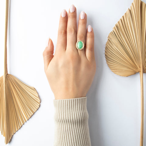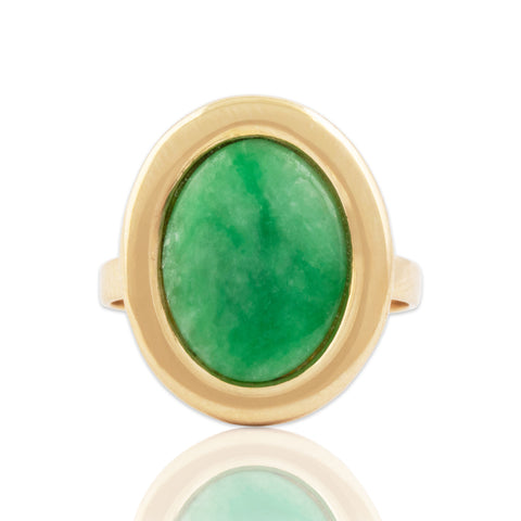 Vintage 14k Yellow Gold 3.5ct Jade Stunning Simple Oval Frame Ring 7.25