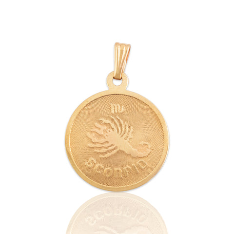 Vintage 14k Yellow Gold Small Textured Scorpio Zodiac Medallion Pendant
