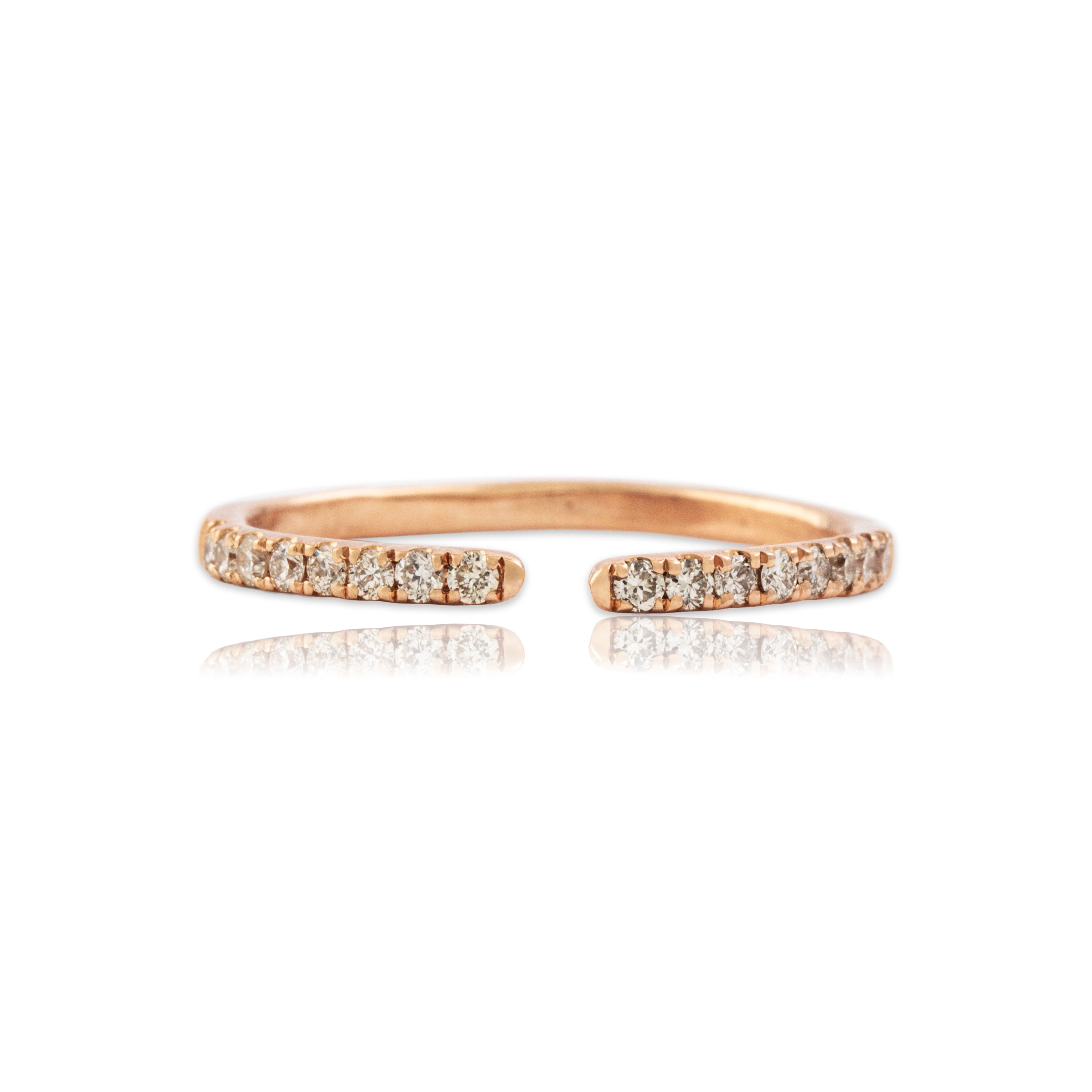 Discover this 14k rose gold ring crafted by an estate maker in this wonderful open line design featuring diamond. All gemstones are natural, earth mined stones, unless stated otherwise.