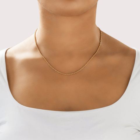 Vintage 14k Yellow Gold Everyday Rope Link 2mm Chain 17.75"