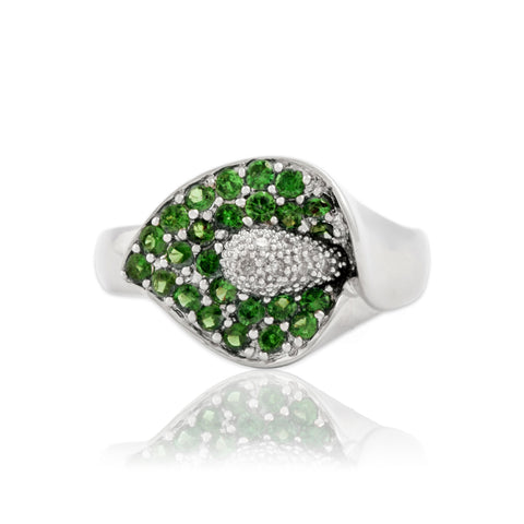 Vintage 14k White Gold .51cttw Tsavorite Garnet Diamond Calla Lily Ring 8.00