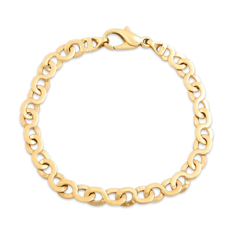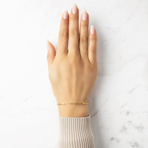 Vintage Italian 18k Yellow Gold Sleek Figaro Chain Bracelet 7.75"