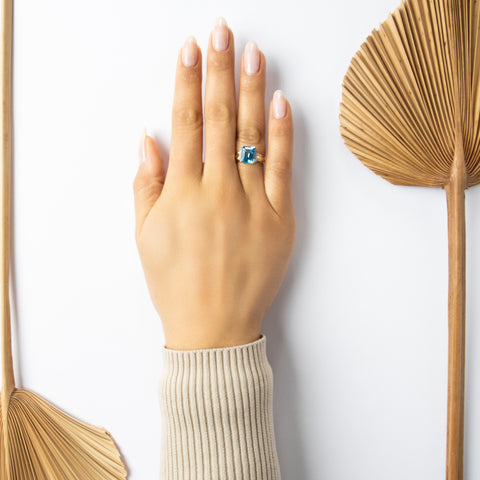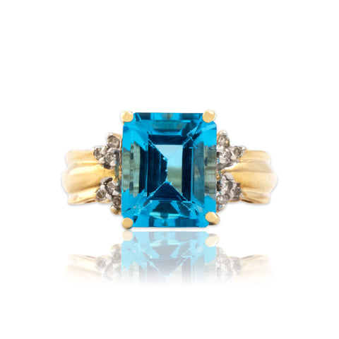 Vintage 14k Yellow Gold 4.29ct Blue Topaz Diamond Striking Vibrant Ring 7.00