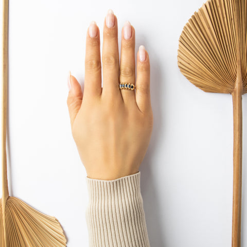 Vintage 14k Yellow Gold .55cttw Blue Sapphire Spiky Marquise Step Ring 6.50