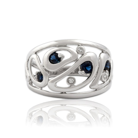 Vintage 14k White Gold Blue Sapphire Diamond Open Artistic Ripple Band Ring 7.00