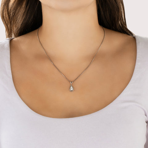 Vintage 14k White Gold Diamond Glittering Framed Teardrop Pendant