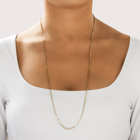 Vintage Italian 14k Yellow Gold Sleek Bar Link Long Necklace 30.5"
