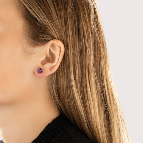 Vintage 14k Yellow Gold 3.27cttw Amethyst Sleek Vivid Round Stud Earrings