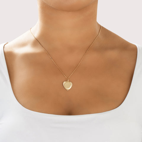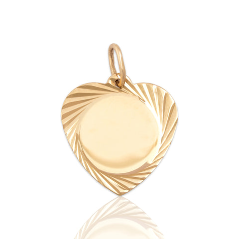Vintage 14k Yellow Gold Engine-Turned Border Heart Charm / Pendant