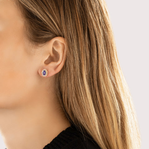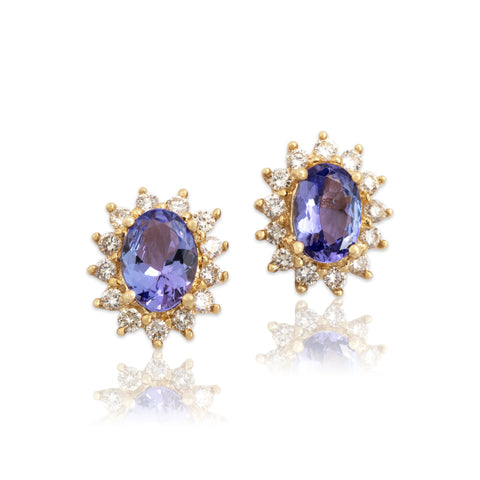 Vintage 14k Yellow Gold 1.47cttw Tanzanite Diamond Glistening Halo Stud Earrings