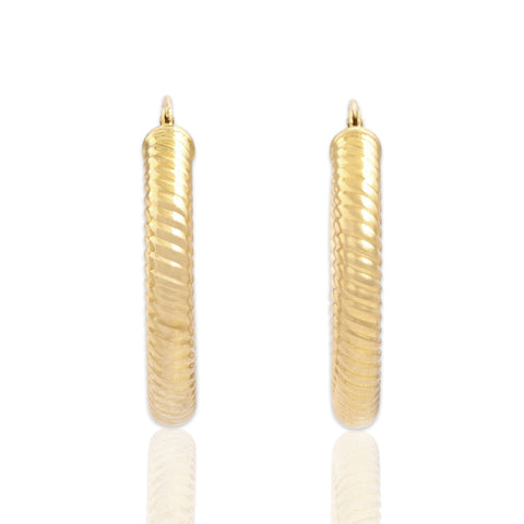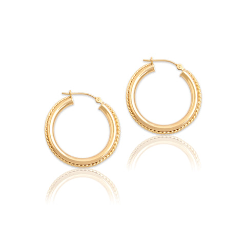 Vintage 14k Yellow Gold Gleaming Rope Detail Hoop Earrings