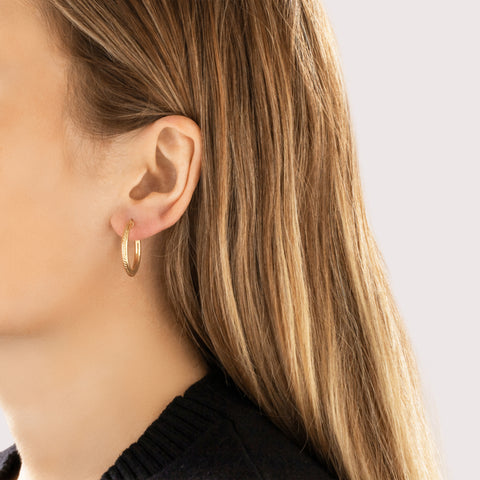 Vintage Lightweight 14k Yellow Gold Chic Ribbed Hoop Earrings