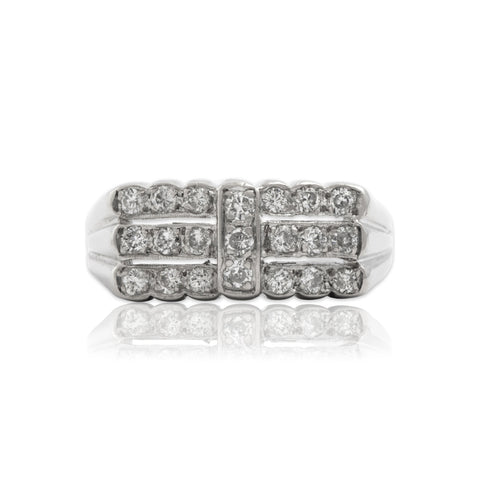 Vintage Heavy Platinum Diamond Striped Bar Ring 8.00