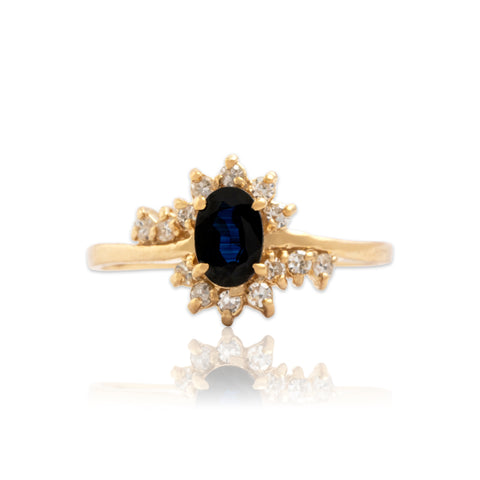 Vintage 14k Yellow Gold .57ct Blue Sapphire Diamond Marvelous Ring 7.00