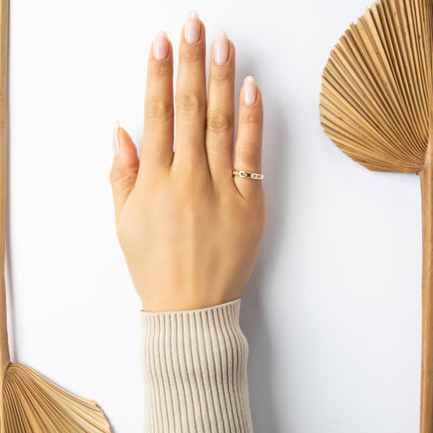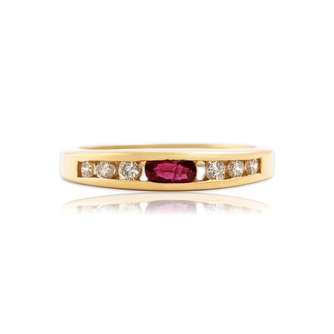 Vintage 14k Yellow Gold Ruby Diamond Sparkling Channel-Set Band Ring 6.50