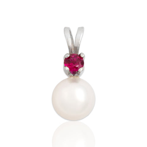 Vintage Small 14k White Gold Pearl Ruby Luminous Duo Drop Pendant