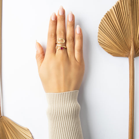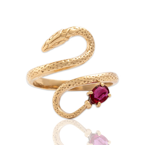 Vintage 14k Yellow Gold Ruby Striking Slithering Snake Wrap Ring 11.25