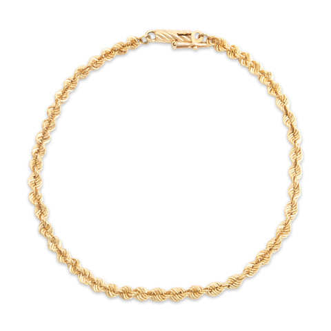 Vintage Italian 14k Yellow Gold Gleaming Rope Chain Bracelet 6.75"