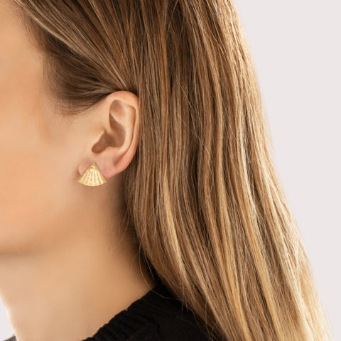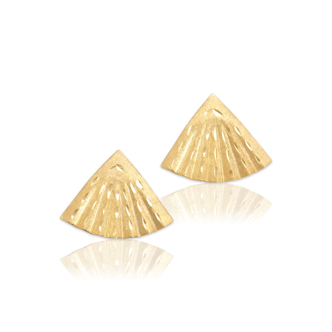 Vintage Lightweight 14k Yellow Gold Fantastic Brushed Fan Stud Earrings